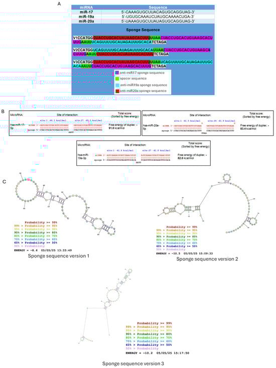 2.2.1. Design and Composition of the Anti-miR-17, Anti-miR-19a and Anti-miR-20a Sponge