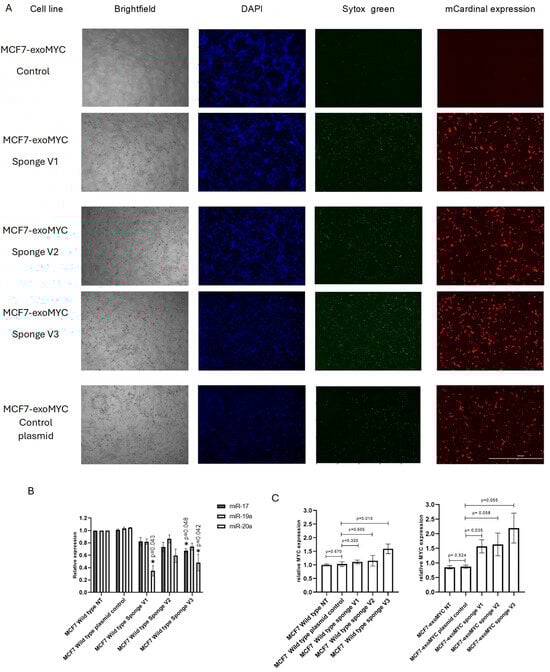 Bravo-Estupiñan, D.M.; Geiß, C.; Arias-Arias, J.L.; Montaño-Samaniego, M.; Chinchilla-Monge, R.; Marín-Müller, C.; Quirós-Barrantes, S.; Régnier-Vigouroux, A.; Ibáñez-Hernández, M.; Mora-Rodríguez, R.A. A Synthetic Sponge System Against miRNAs of the miR-17/92 Cluster Targets Transcriptional MYC Dosage Compensation in Aneuploid Cancer. Cells 2025, 14, 1384. https://doi.org/10.3390/cells14171384