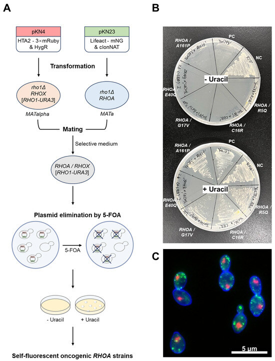 - Qadota, H.; Anraku, Y.; Botstein, D.; Ohya, Y. Conditional Lethality of a Yeast Strain Expressing Human RHOA in Place of RHO1. Proc. Natl. Acad. Sci. USA 1994, 91, 9317–9321. [Google Scholar] [CrossRef] [PubMed]