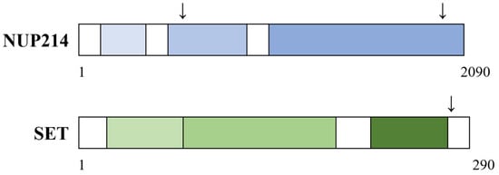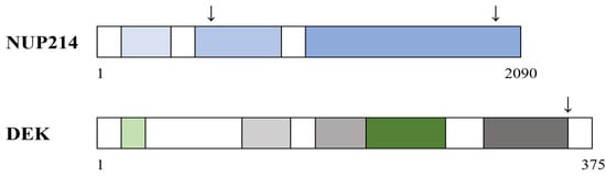 - Zhou, M.H.; Yang, Q.M. NUP214 fusion genes in acute leukemia (Review). Oncol. Lett. 2014, 8, 959–962. [Google Scholar] [CrossRef] [PubMed]
