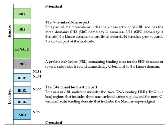 - Colicelli, J. ABL tyrosine kinases: Evolution of function, regulation, and specificity. Sci. Signal. 2010, 3, re6. [Google Scholar] [CrossRef] [PubMed]