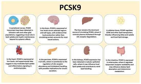 Tissue distribution introduces an important nuance for the nervous system; although plasma PCSK9 orchestrates whole-body lipoprotein handling, parenchymal effects in the brain and peripheral nerves are expected to arise mainly from locally produced protein because access from the circulation is limited [3,15,25,52].