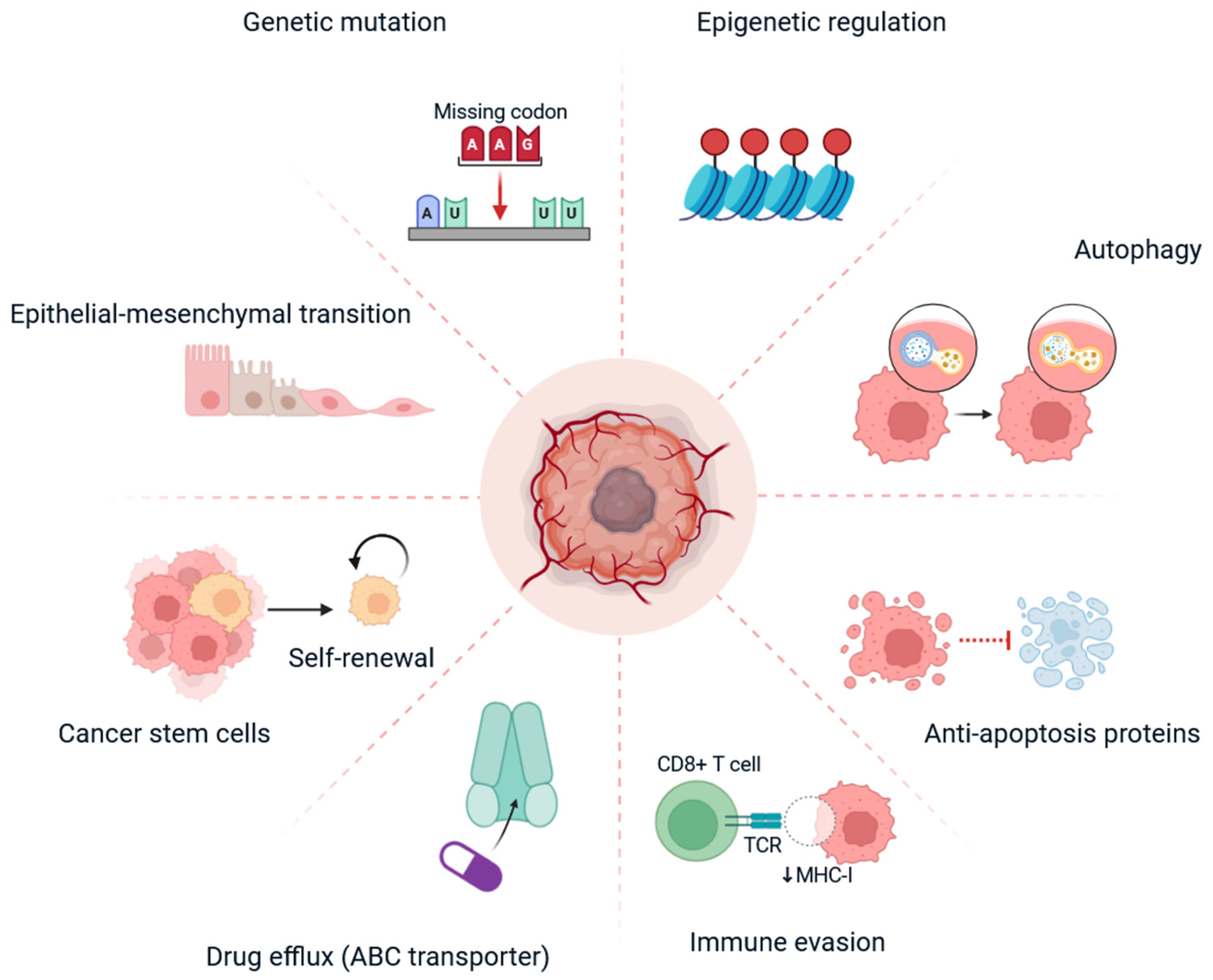 5 | Major Mechanisms of Resistance | Genetic mutations: TP53, BRCA1/2, PIK3CA, PTEN Epigenetic changes: Histone modifications, DNA methylation EMT and stemness: Enhanced invasion and self-renewal Drug efflux: ABC transporters (P-gp, BCRP) Immune evasion: Downregulation of MHC-I, T-cell dysfunction | [41] |