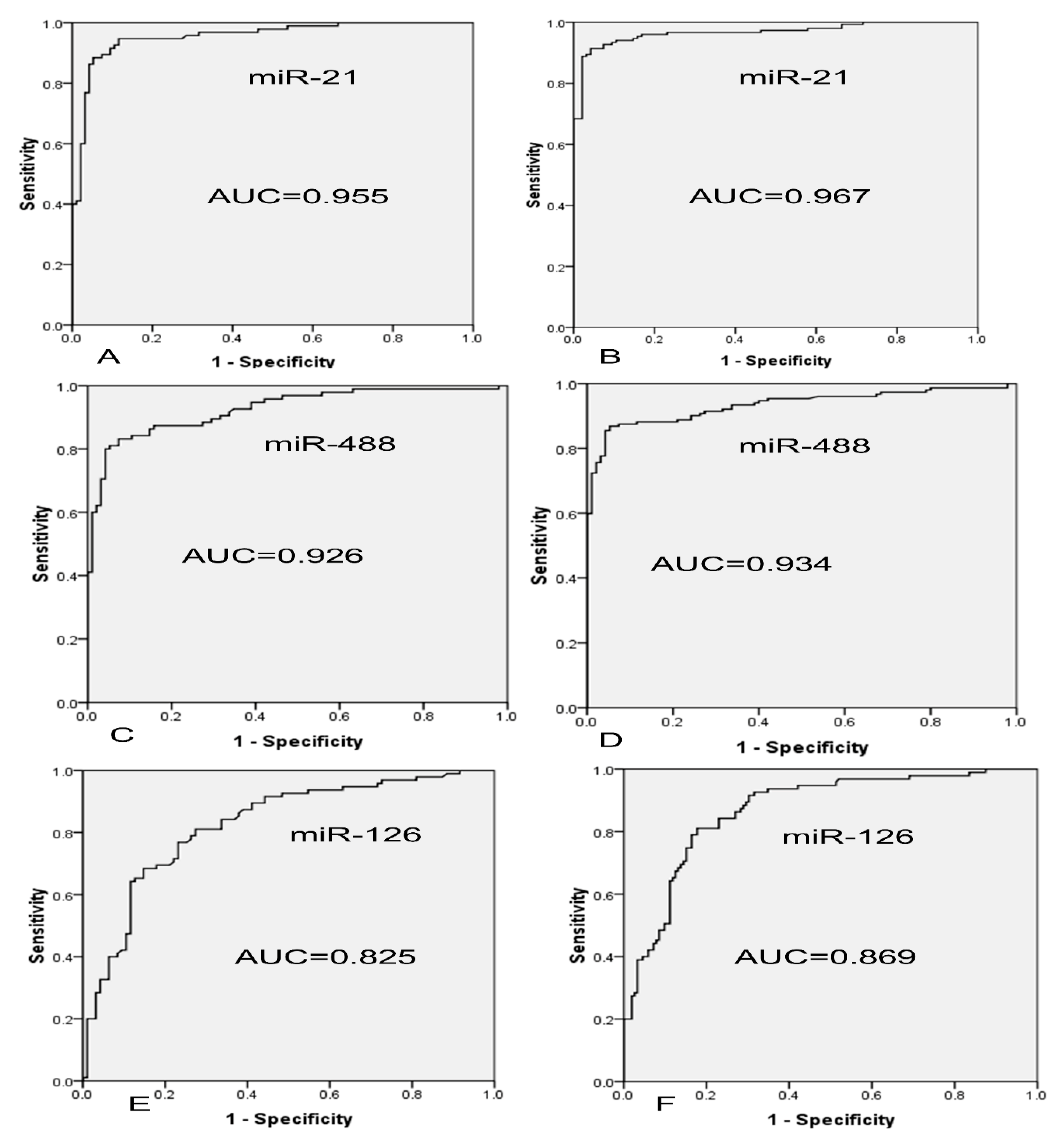 3.3. Diagnostic Impact of Plasma miRNAs for AMI Patients