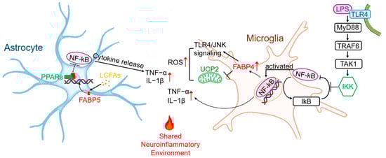 2.1. The FABP-Driven “Meta-Inflammatory” Axis in Glial Cells
