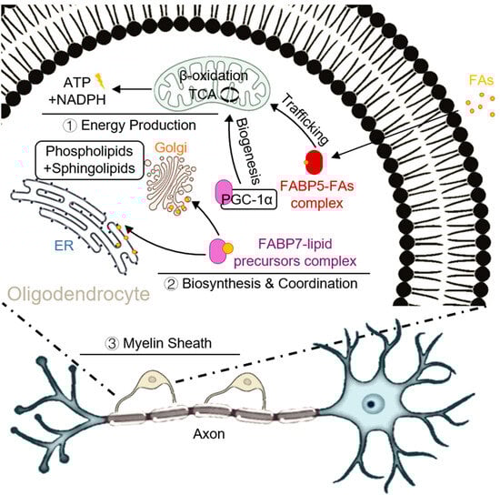 2.2. The FABP-Driven “Metabolic-Survival” Balance in Oligodendrocytes