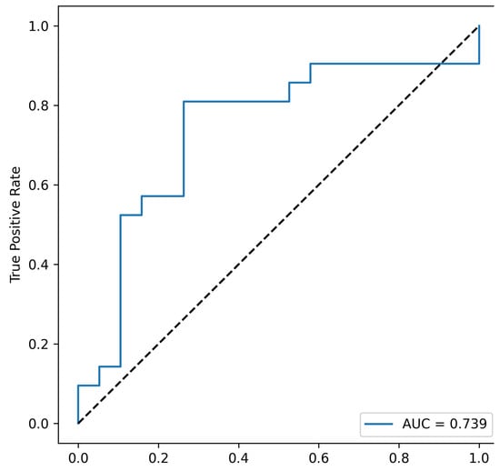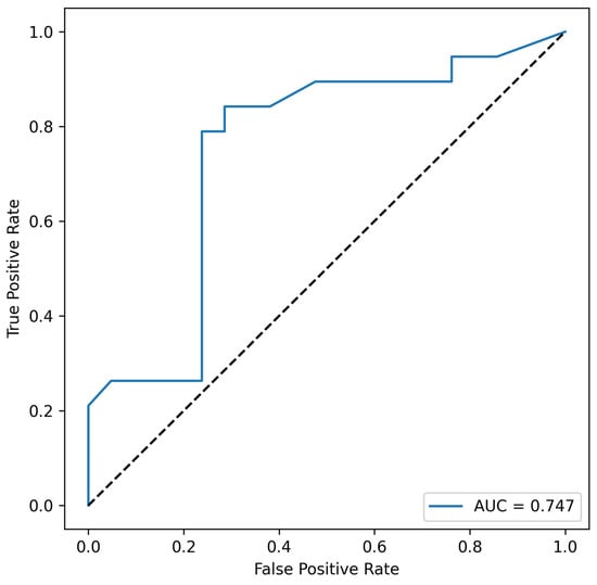 Acinetobacter spp. appears in every combination; moreover, Acinetobacter spp. alone exhibits prognostic value, suggesting that this taxon may be a key determinant for the non-metastatic CRC group. The most informative combination appears to include Eubacterium rectale and Acinetobacter spp. (area under the ROC curve, AUC = 0.747), see Figure 4.