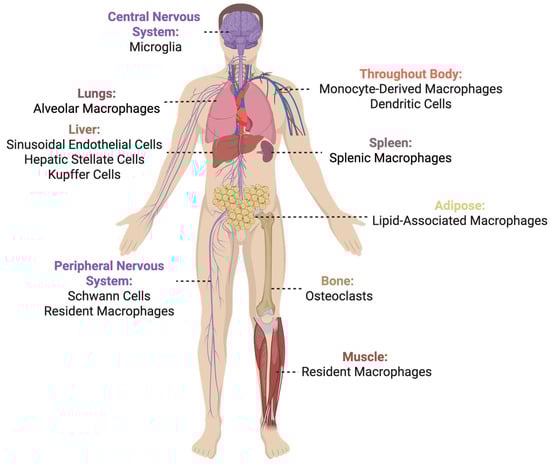 - Wang, P.L.; Yim, A.K.; Kim, K.W.; Avey, D.; Czepielewski, R.S.; Colonna, M.; Milbrandt, J.; Randolph, G.J. Peripheral nerve resident macrophages share tissue-specific programming and features of activated microglia. Nat. Commun. 2020, 11, 2552. [Google Scholar] [CrossRef] [PubMed]