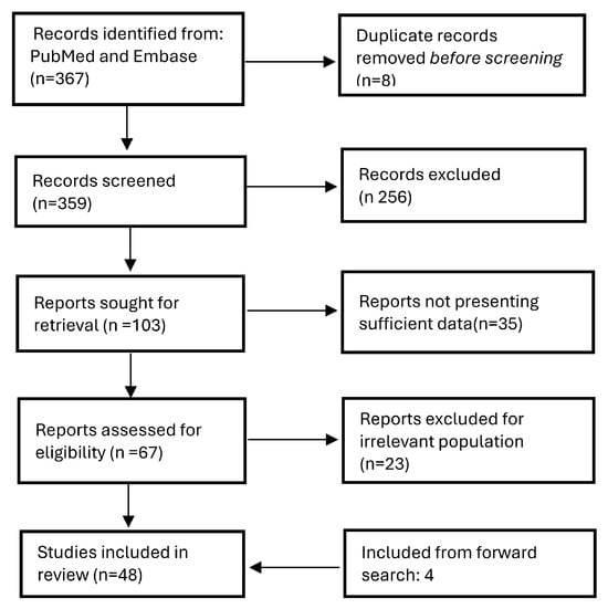 - Page, M.J.; McKenzie, J.E.; Bossuyt, P.M.; Boutron, I.; Hoffmann, T.C.; Mulrow, C.D.; Shamseer, L.; Tetzlaff, J.M.; Akl, E.A.; Brennan, S.E.; et al. The PRISMA 2020 Statement: An Updated Guideline for Reporting Systematic Reviews. BMJ 2021, n71. [Google Scholar] [CrossRef]