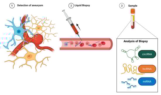 Circulating nucleic acids RNA species have gained attention as minimally invasive “liquid biopsy” biomarkers for IAs detection and risk of rupture stratification (Figure 4).