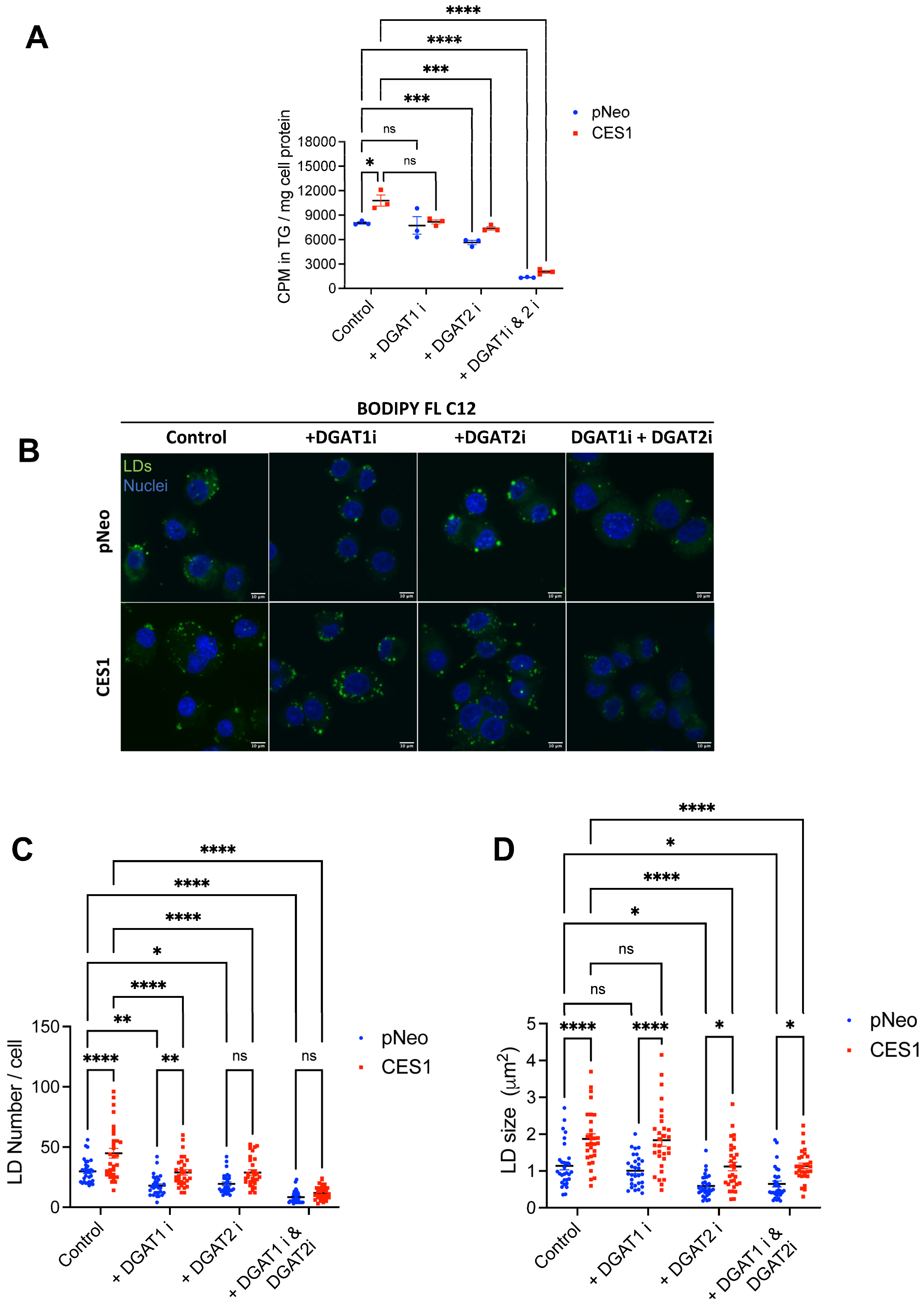 3.1. CES1 Facilitates TG Accumulation and Large LD Formation