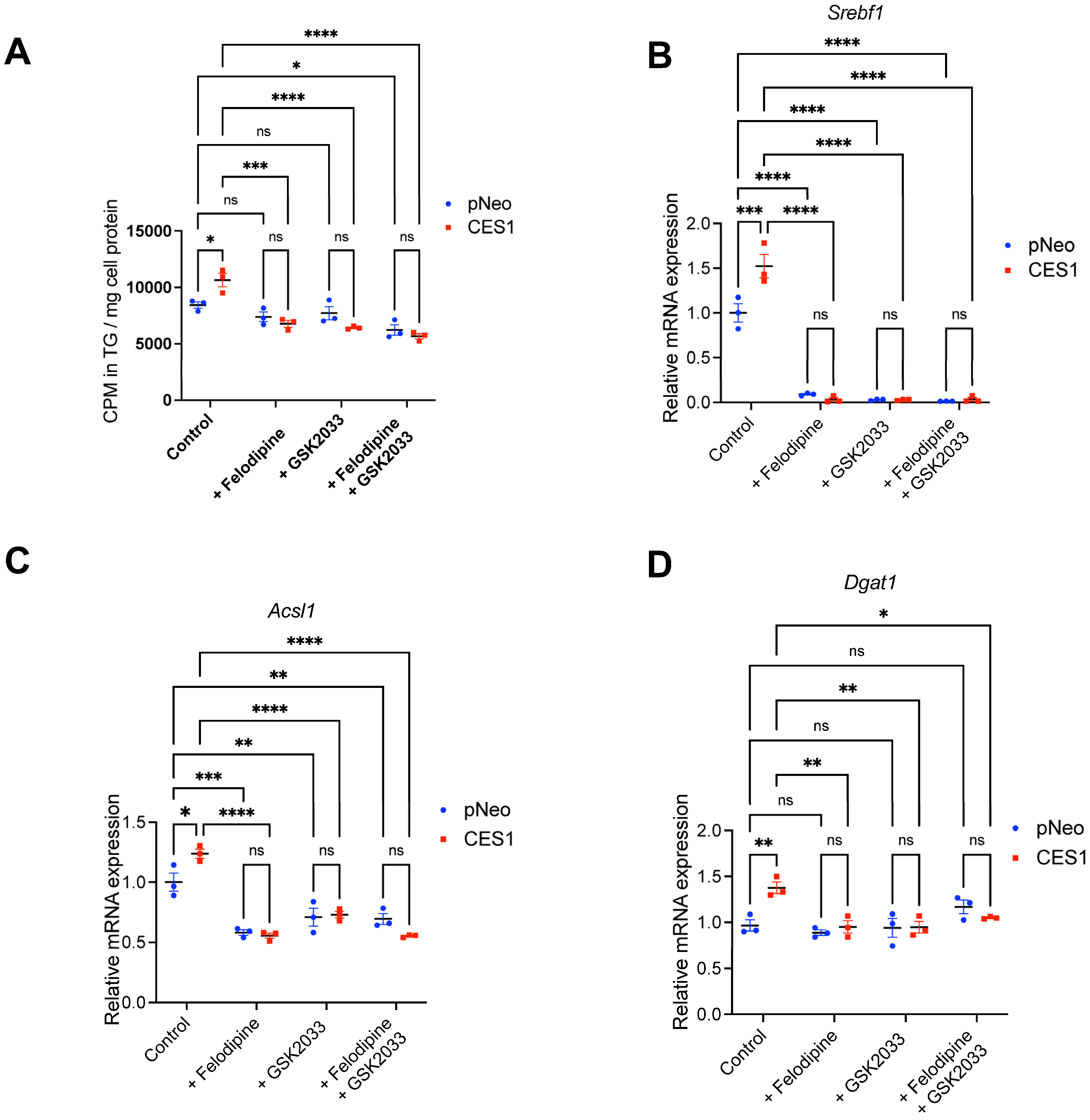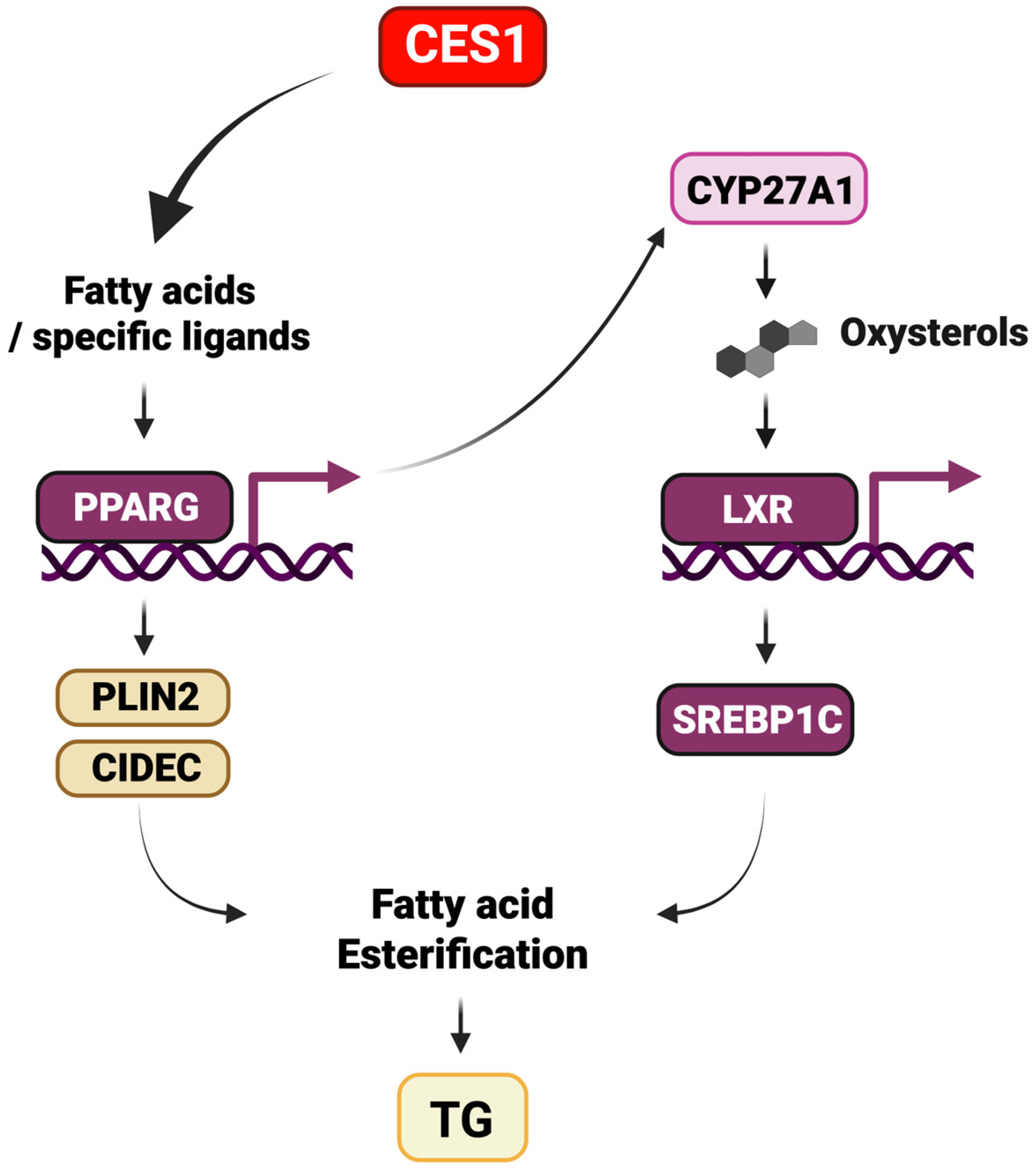 Selvaraj R, Lian J, Watts R, Nelson R, Saikali MF, Cummins CL, Lehner R. CES1 Increases Hepatic Triacylglycerol Synthesis Through Activation of PPARγ, LXR and SREBP1c. Cells. 2025; 14(19):1548. https://doi.org/10.3390/cells14191548