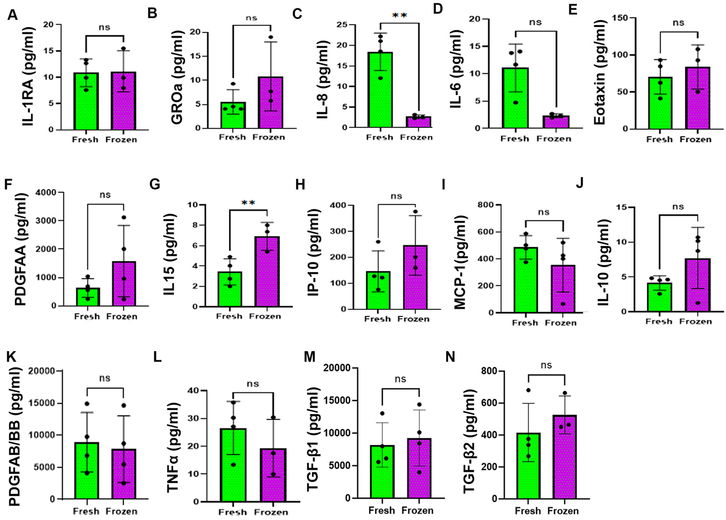 3.5. Effect of Freezing on Soluble Factors in the Plasma from BMAC