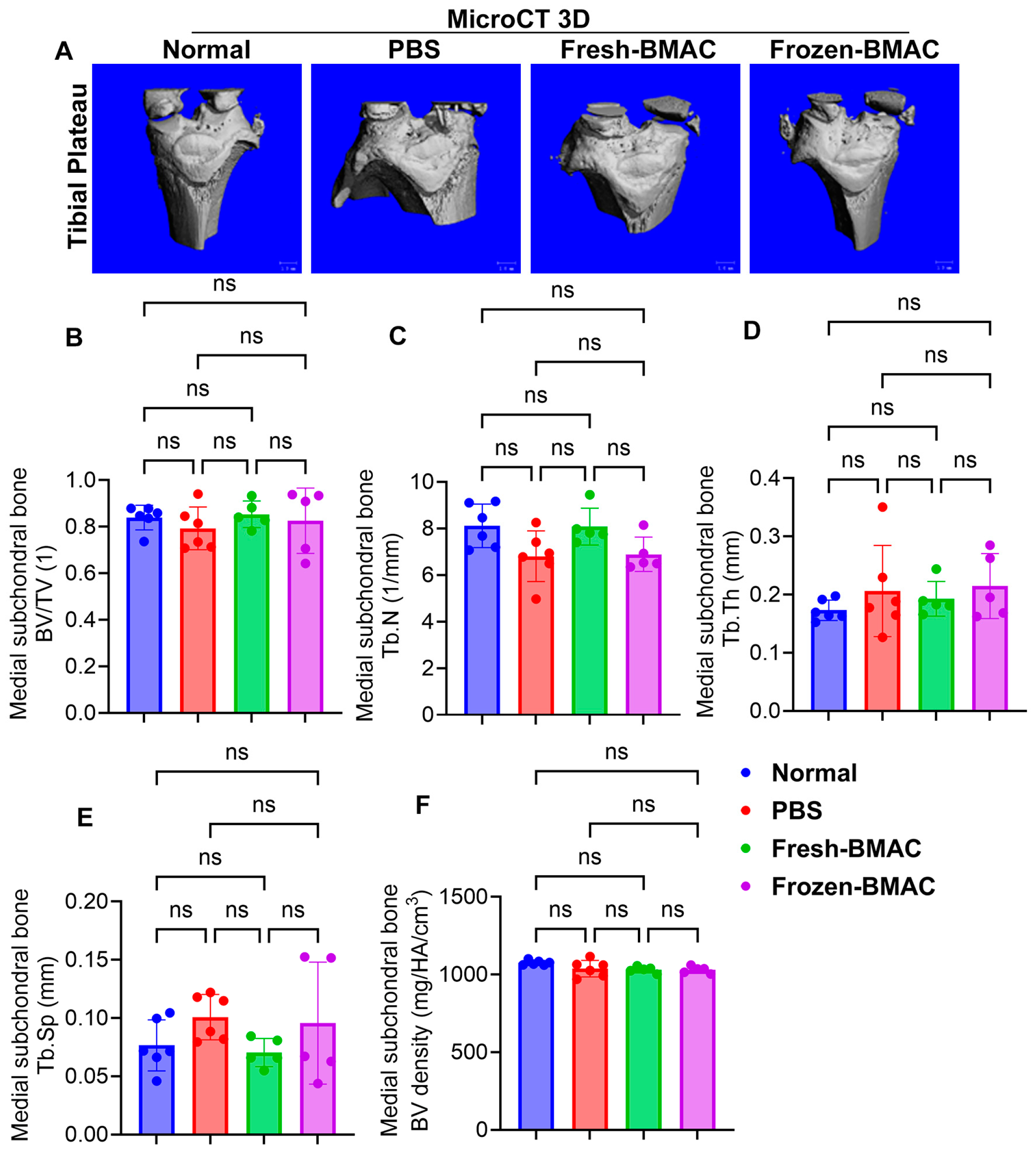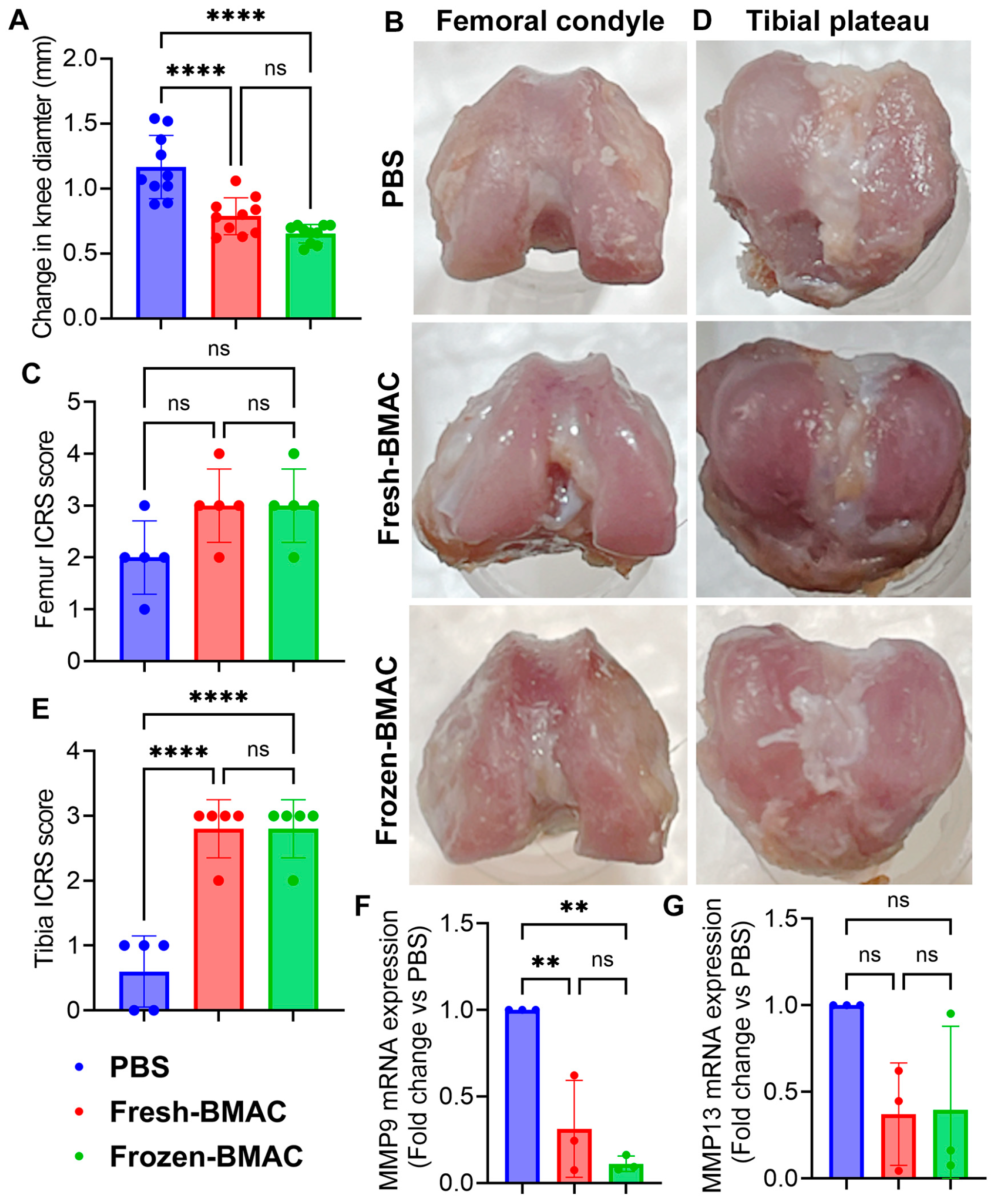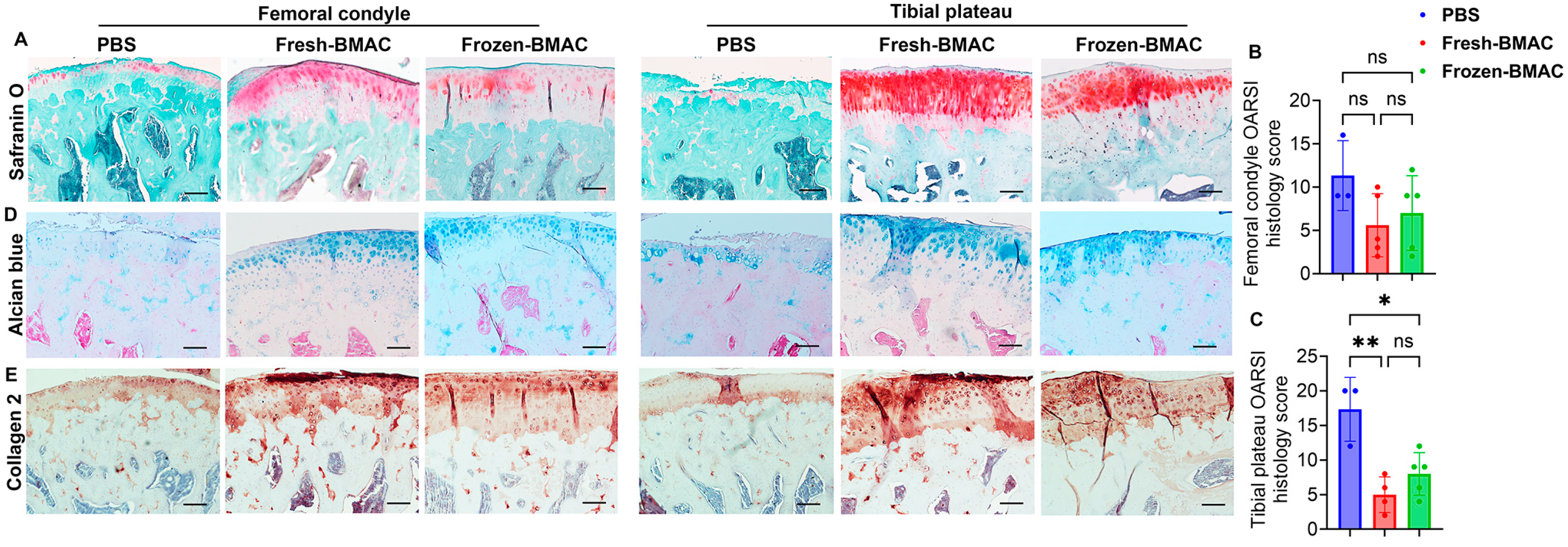 - Both fresh and frozen BMAC equally improved histological cartilage scores compared with PBS control in an OA rat model.