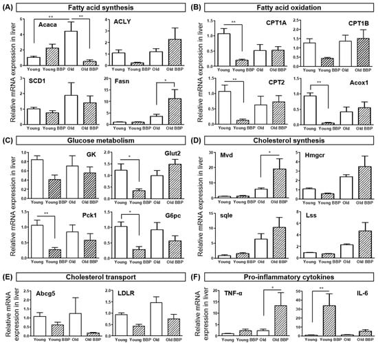 3.3. Effects of BBP on Lipid Metabolism and Pro-Inflammatory Cytokines in Young Mice