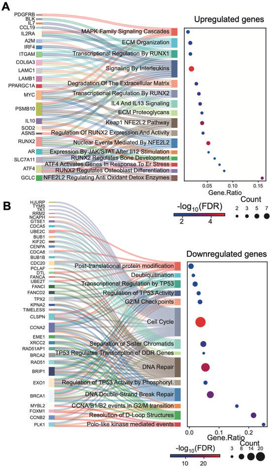 River plots of upregulated genes (A) and downregulated (B) genes related to non-metabolic processes during ASC osteogenic differentiation.