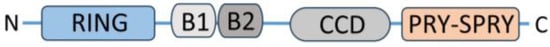 - Watanabe, M.; Hatakeyama, S. TRIM proteins and diseases. J. Biochem. 2017, 161, 135–144. [Google Scholar] [CrossRef] [PubMed]