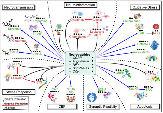 - Lin, K.; Stiles, J.; Tambo, W.; Ajmal, E.; Piao, Q.; Powell, K.; Li, C. Bimodal functions of calcitonin gene-related peptide in the brain. Life Sci. 2024, 359, 123177. [Google Scholar] [CrossRef] [PubMed]