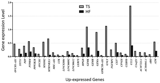 Thirty up-expressed genes in a patient with TS compared with an HF.