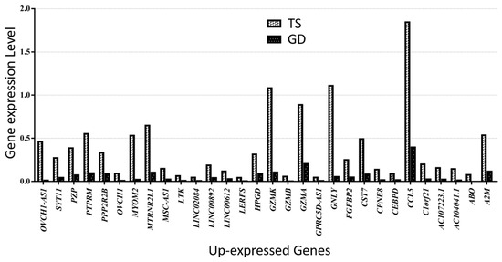 Thirty up-expressed genes in a patient with TS compared with a female patient with GD.
