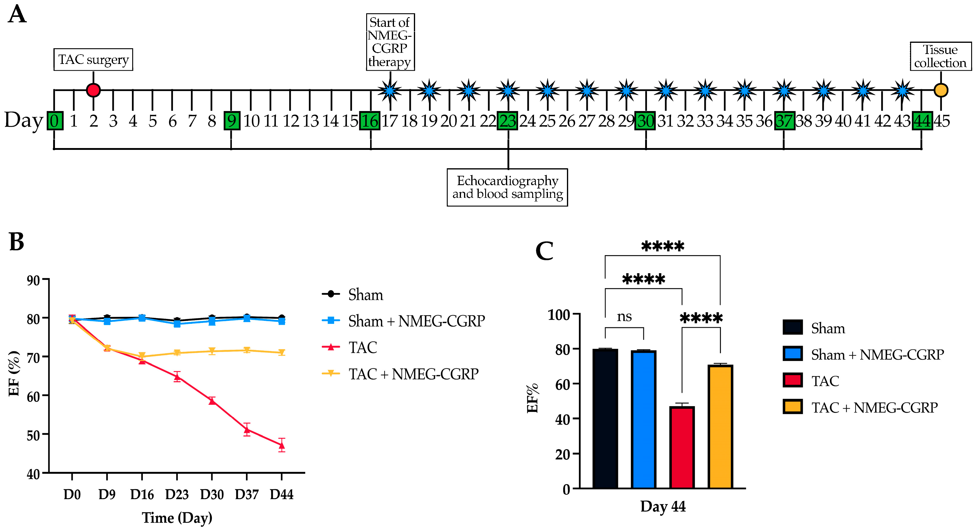3.1. NMEG-CGRP Improved Left Ventricular Systolic Function After the Onset of HF Symptoms