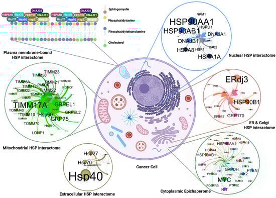 The HSP90 family, with HSP90 and GRP94/GP96 as prominent members [83,84], acts as a cornerstone for the cytosolic epichaperome network [63,85]. This pivotal role raises the question of their potential to nucleate and regulate a corresponding novel membrane-bound system. Beyond this structural significance, HSP90 members are recognized for their immunomodulatory function [86,87] and involvement in cancer progression [88,89].