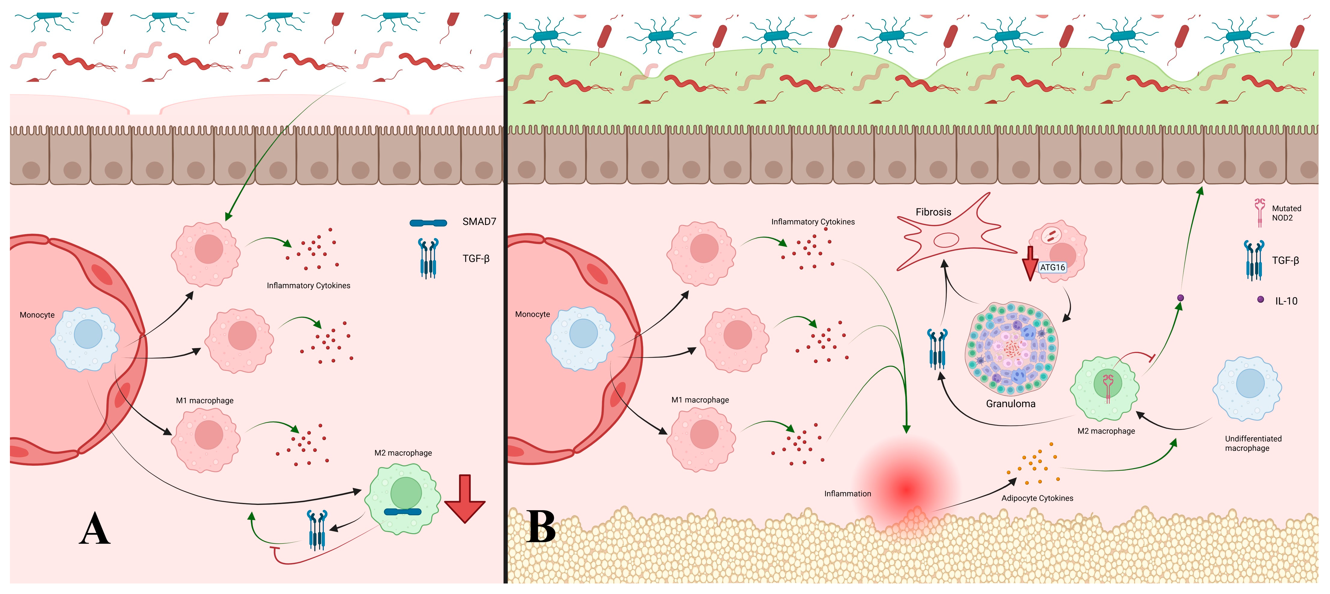 - Ma, S.; Zhang, J.; Liu, H.; Li, S.; Wang, Q. The Role of Tissue-Resident Macrophages in the Development and Treatment of Inflammatory Bowel Disease. Front. Cell Dev. Biol. 2022, 10, 896591. [Google Scholar] [CrossRef]