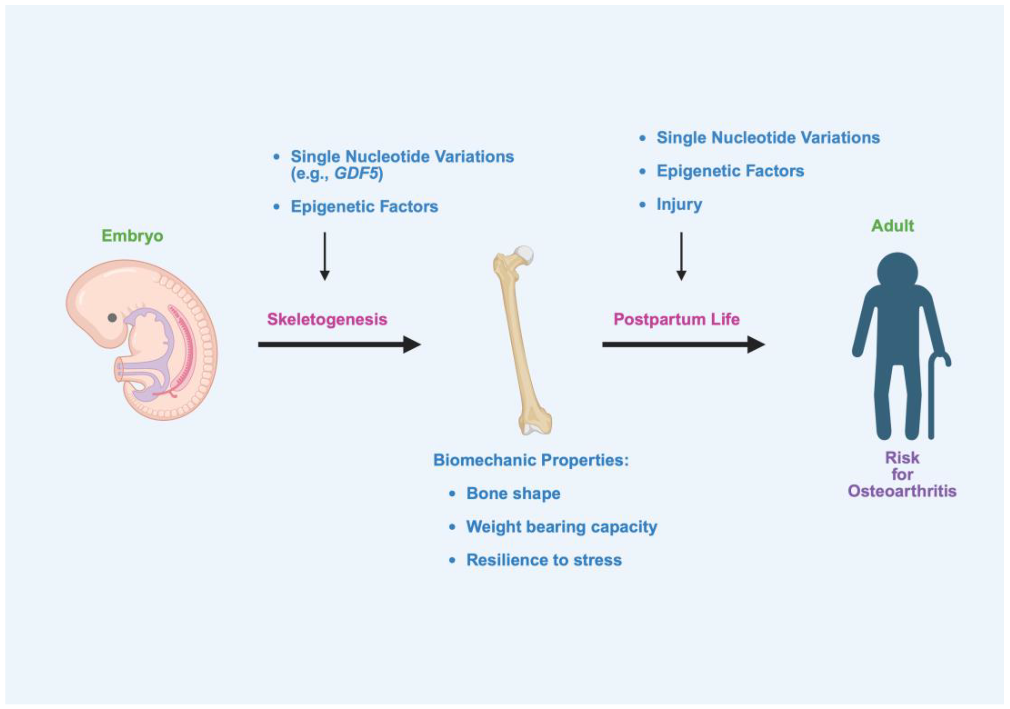 - According to the concept of a developmental origin for OA, the functional cooperation between chromatin dynamics and transcription factors (TFs) regulates the unfolding of a development-specific gene expression program, defines the outcome of skeletogenesis, and ultimately determines the articular biomechanics and the risk of OA.