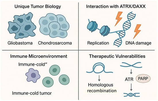 - Loss of ATRX/DAXX and ALT activation creates unique DNA repair vulnerabilities, including hypersensitivity to ATR and PARP inhibition, opening avenues for targeted therapy.