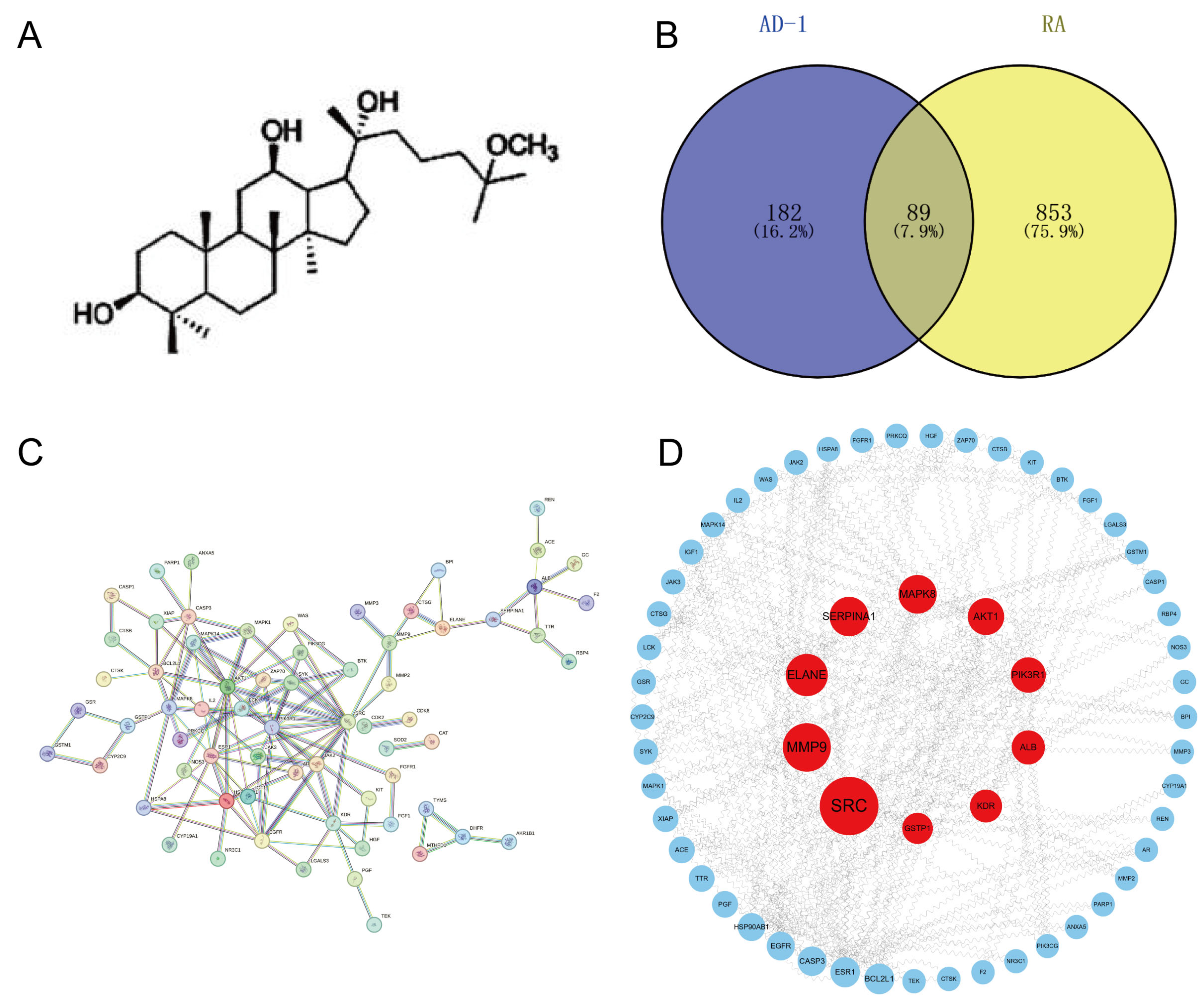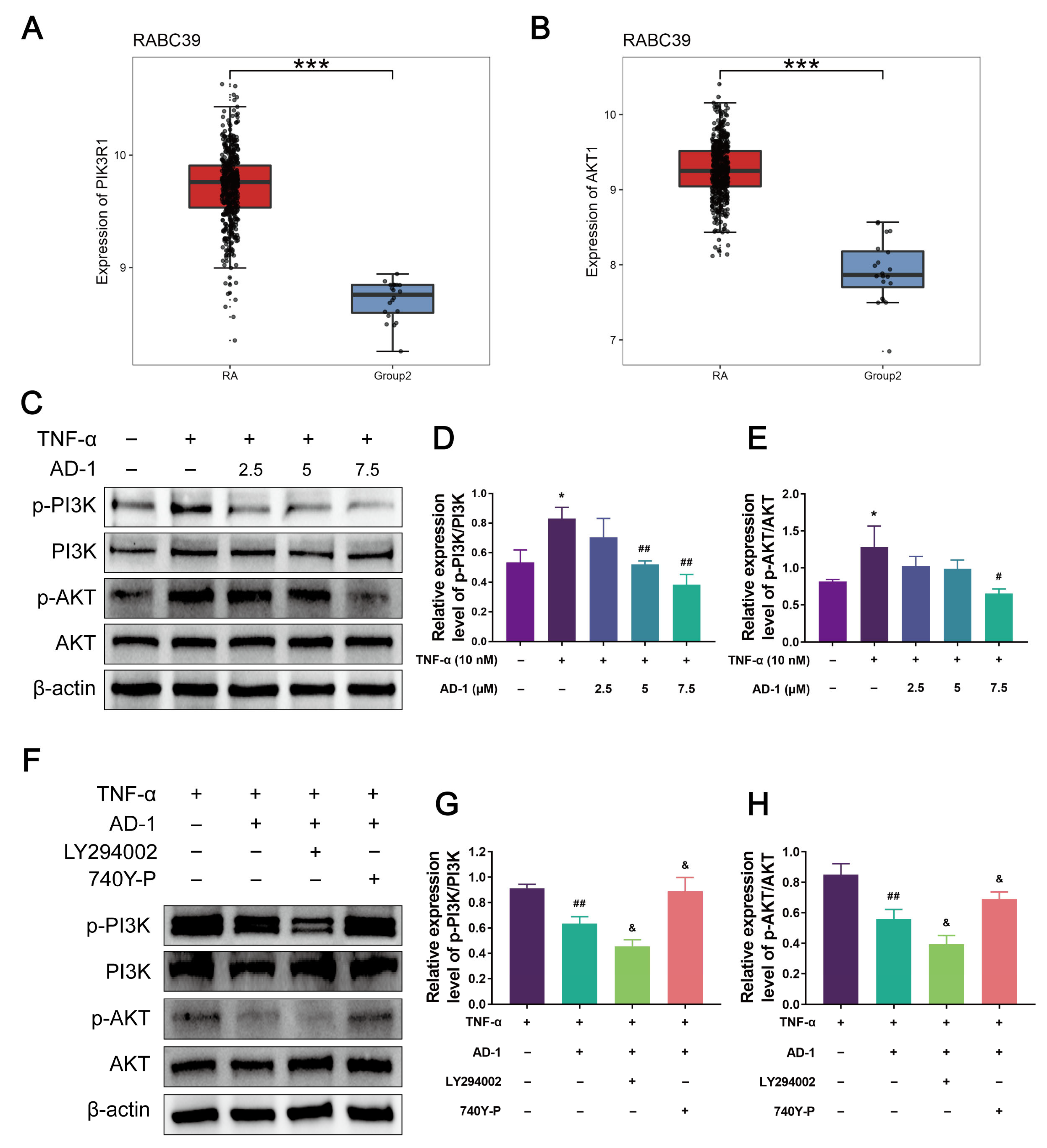 - Network pharmacology identified that the key pathway for AD-1 in treating RA is PI3K/AKT.