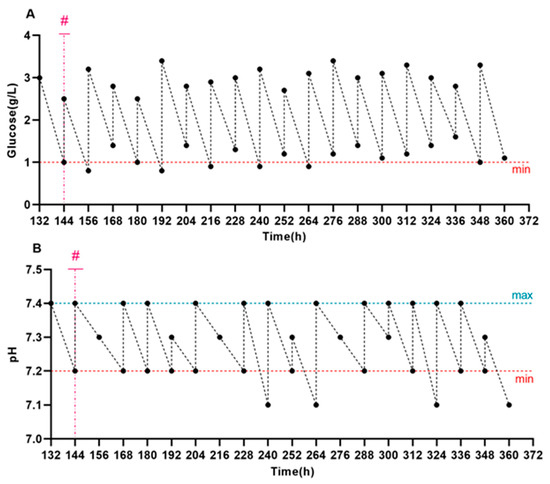 pH was measured using a pH meter as described in [30]. If a decrease in the culture medium pH was observed, it was corrected by adjusting the CO2 concentration in the incubator and by periodically adding 7.0% NaHCO3 solution (Sigma-Aldrich, St. Louis, MO, USA, #144558).