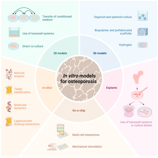 Regarding in silico models, all models reviewed in this article focus on identifying new drugs or targets for the treatment of osteoporosis, and interactions of single proteins rather than studying mechanisms leading to osteoporosis. However, a major advantage of in silico models compared to in vitro or in vivo models is the ability to study many potential targets in a short time [117].