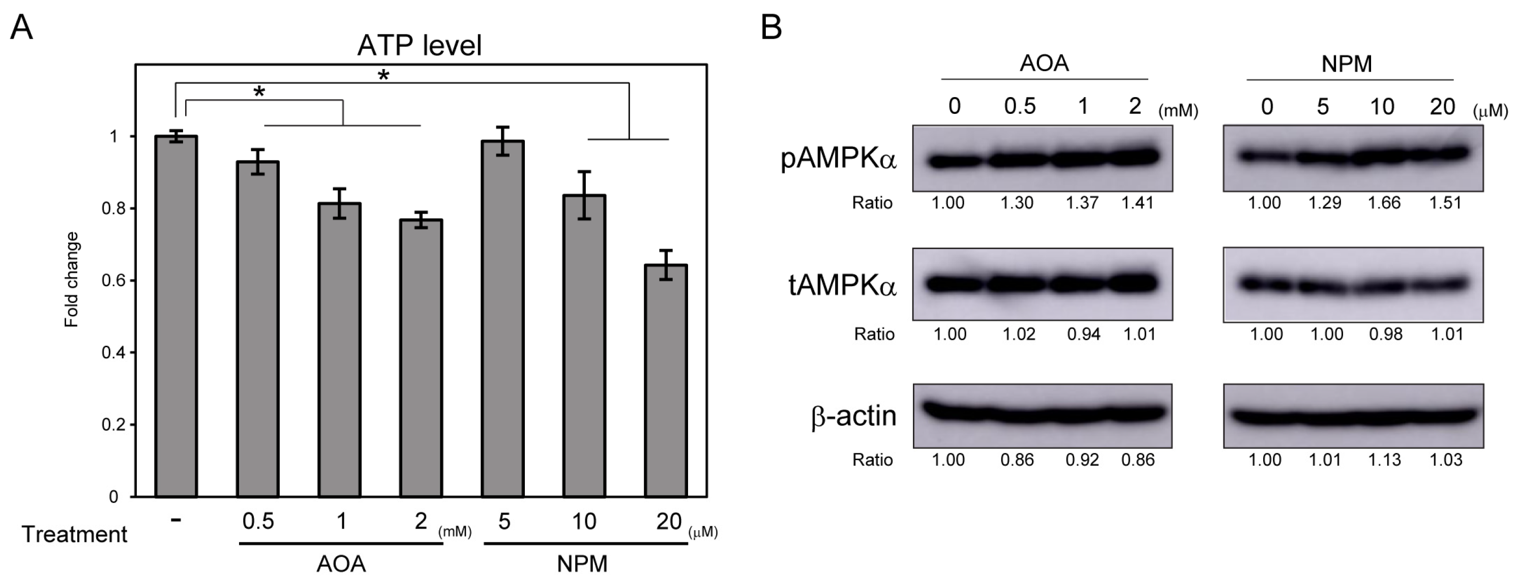 3.1. AOA or NPM Treatments Decrease ATP Levels and Activate AMPK