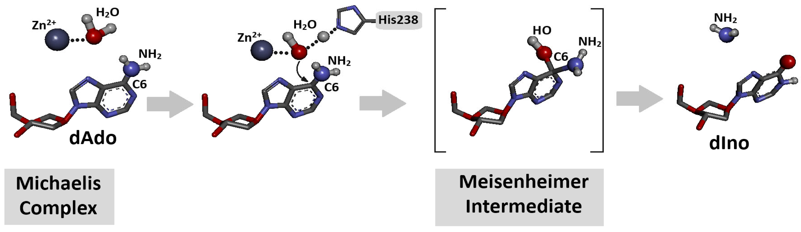 3.3. DFTB Studies of OXOdAdo and (5′R/S)cdAdo Conversion to OXOdIno and (5′R/S)cdIno by Adenine Deaminase