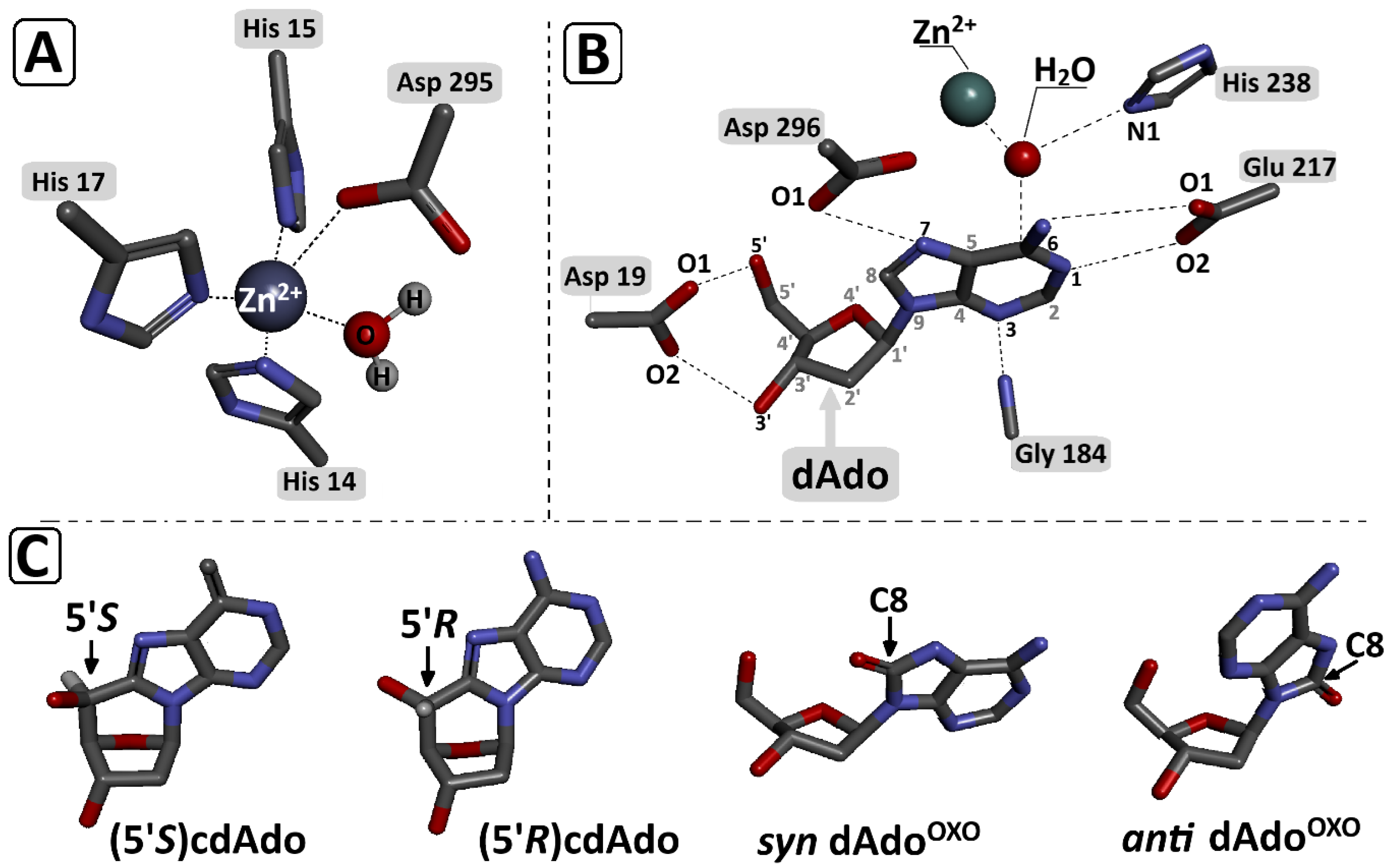 dAdo | (5′R)cdAdo | (5′S)cdAdo | anti OXOdAdo | syn OXOdAdo | ||