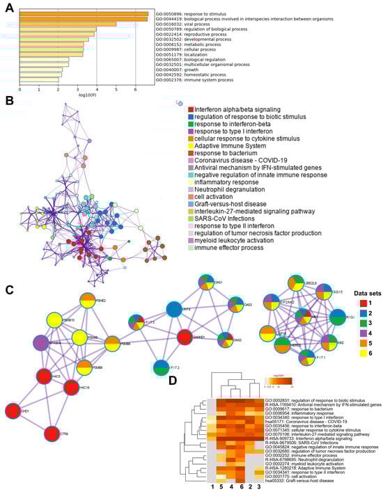 - Zhou, Y.; Zhou, B.; Pache, L.; Chang, M.; Khodabakhshi, A.H.; Tanaseichuk, O.; Benner, C.; Chanda, S.K. Metascape provides a biologist-oriented resource for the analysis of systems-level datasets. Nat. Commun. 2019, 10, 1523. [Google Scholar] [CrossRef]