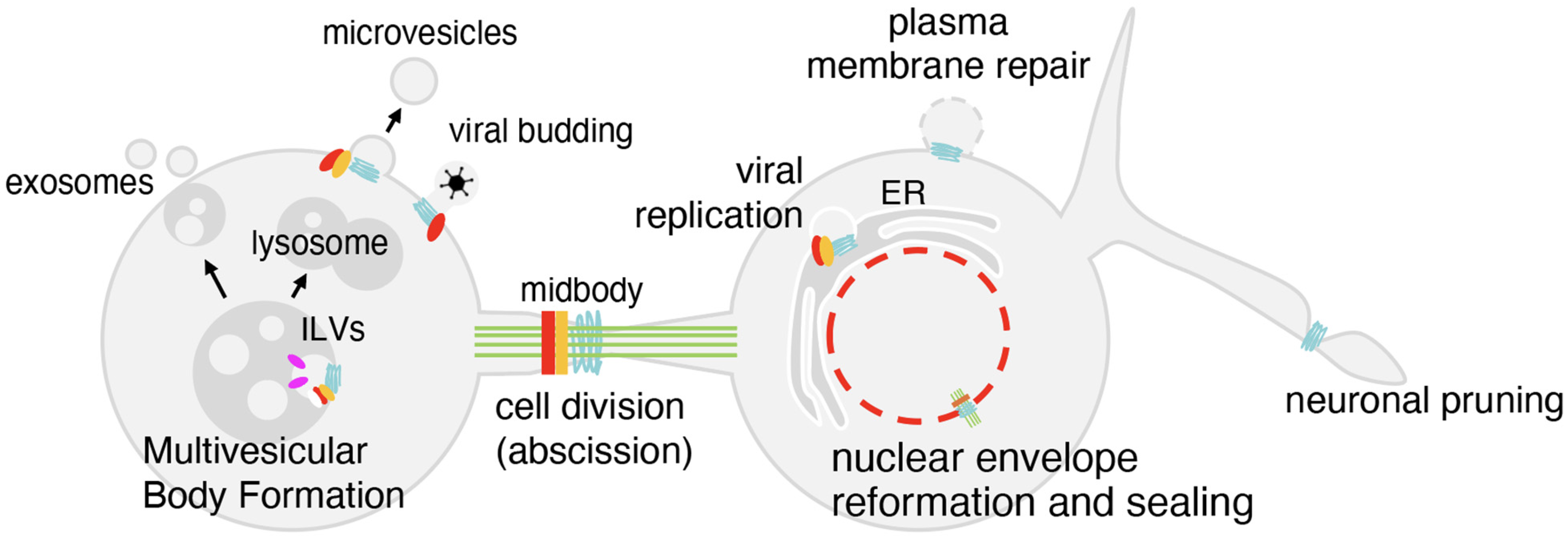 - Correct ESCRTs type III assembly in mitosis is essential for nuclear reformation and genome integrity. ESCRT dysfunction causes DNA damage, spindle clearance defects, and chromosomal instability, mechanistically linking ESCRTs to disease including cancer and neurodegeneration.