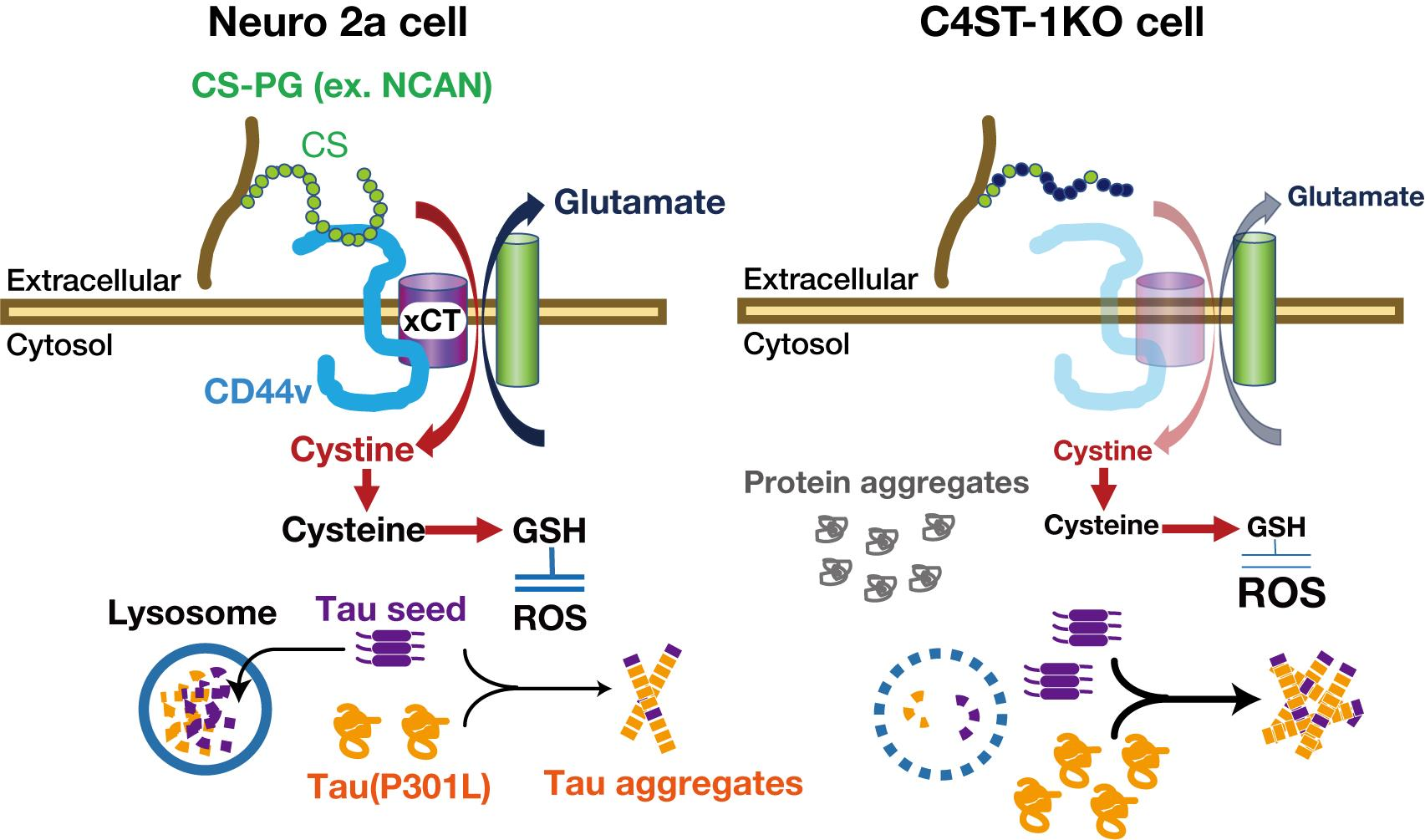 - Oxidative imbalance from C4ST-1 loss accelerates tau protein aggregation.