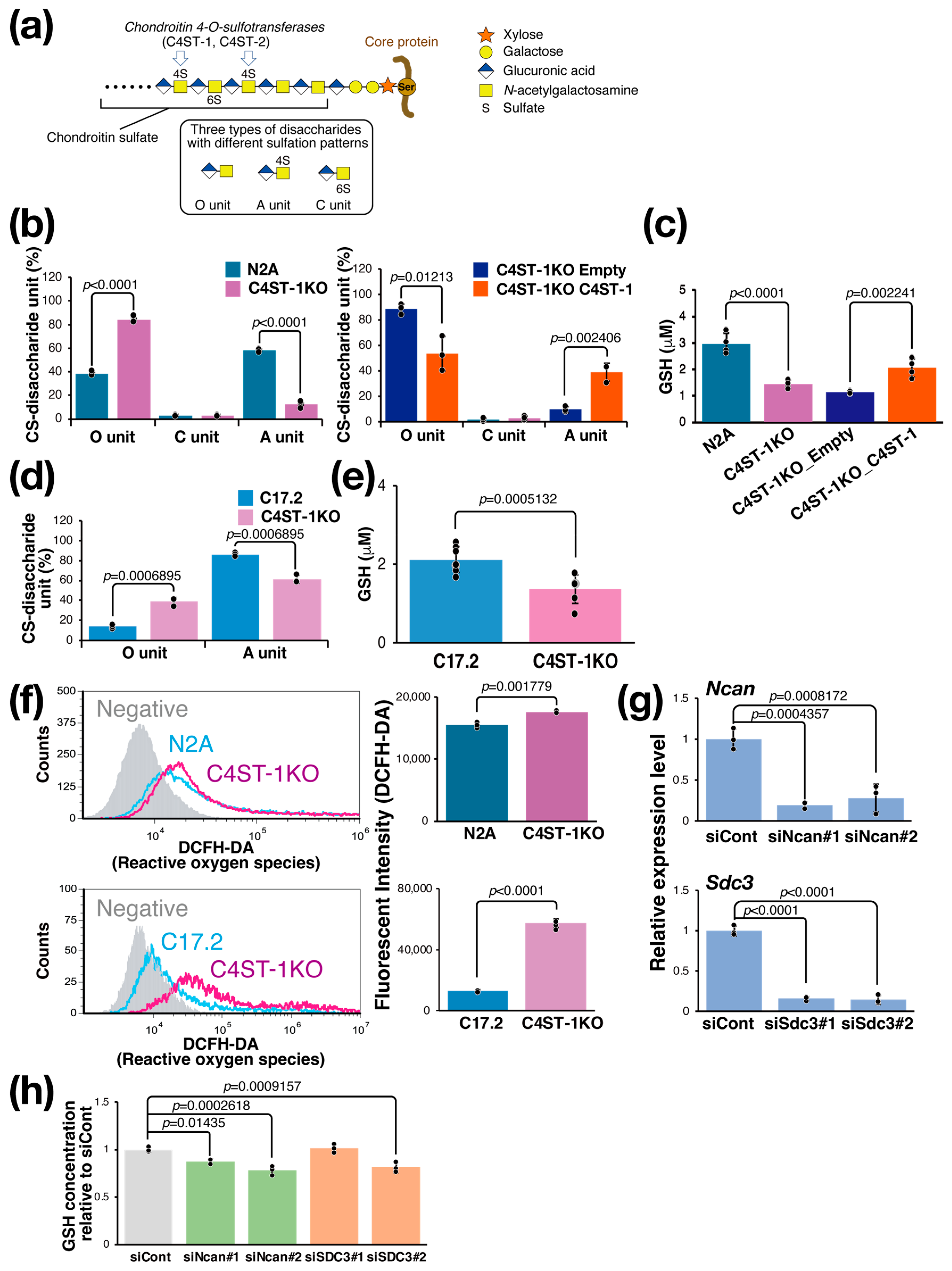 - Reduced CS 4-sulfation lowers glutathione and elevates reactive oxygen species.