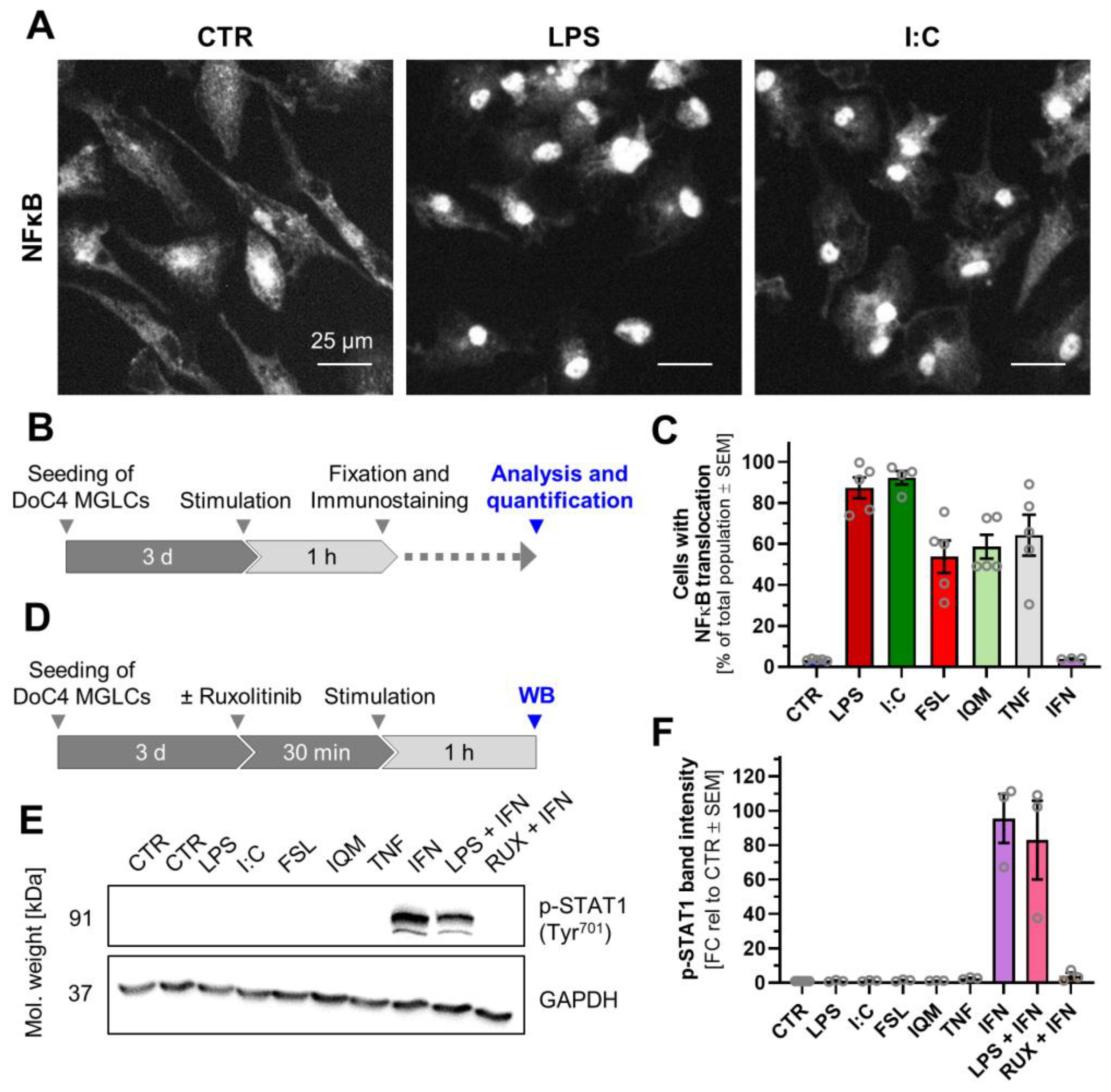 3.3. Divergent Signal Transduction in MGLCs After Exposure to Inflammatory Stimuli