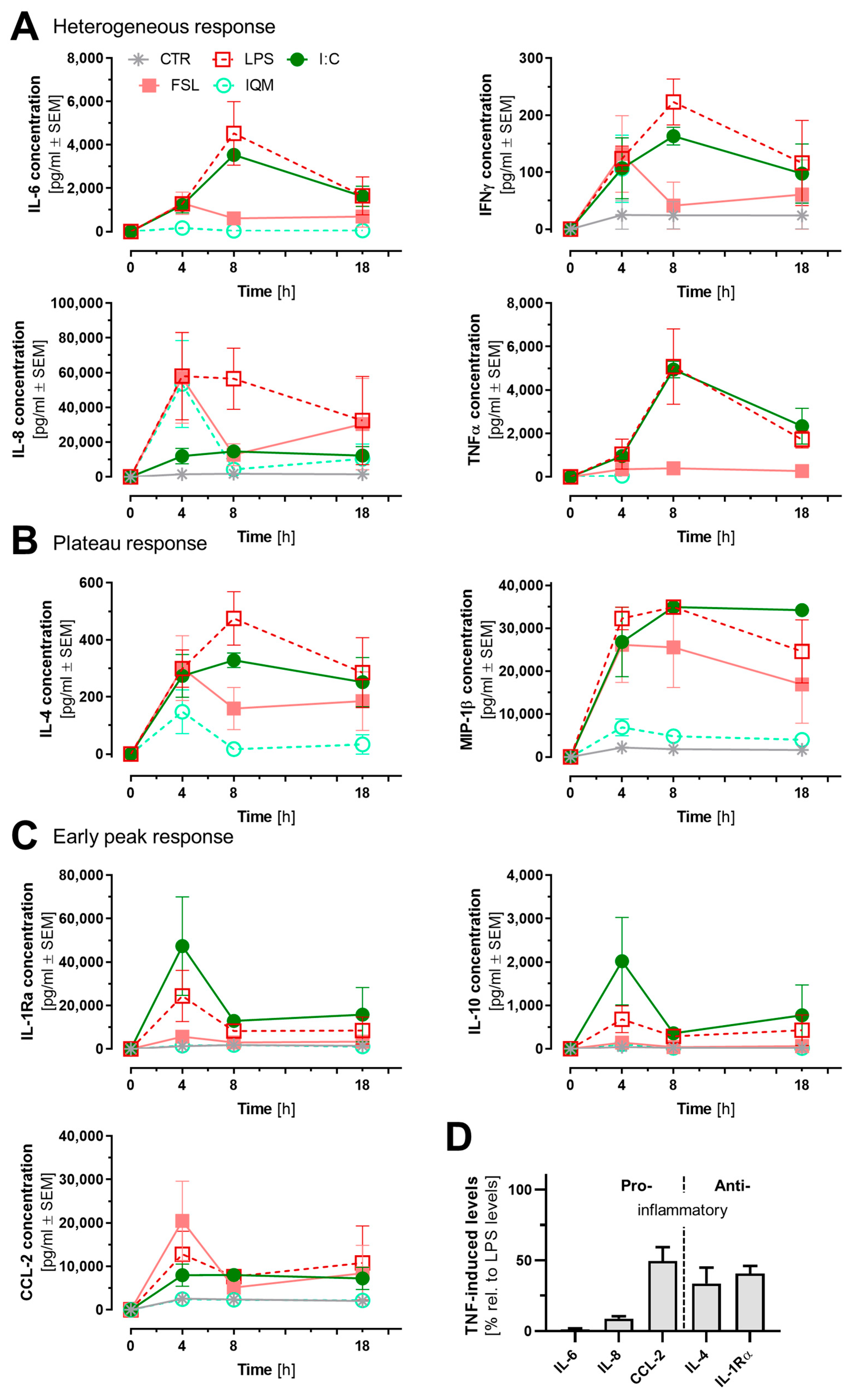 - Tiemeijer, B.M.; Heester, S.; Sturtewagen, A.Y.W.; Smits, A.; Tel, J. Single-cell analysis reveals TLR-induced macrophage heterogeneity and quorum sensing dictate population wide anti-inflammatory feedback in response to LPS. Front. Immunol. 2023, 14, 1135223. [Google Scholar] [CrossRef] [PubMed]