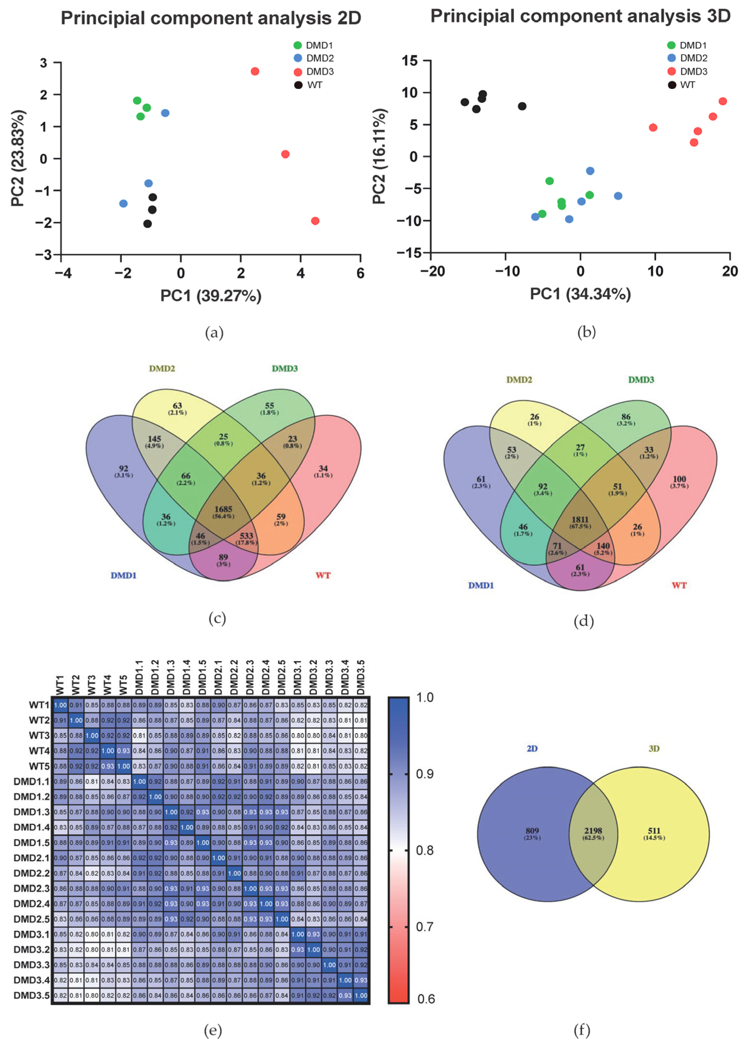 - Mournetas, V.; Massouridès, E.; Dupont, J.-B.; Kornobis, E.; Polvèche, H.; Jarrige, M.; Dorval, A.R.L.; Gosselin, M.R.F.; Manousopoulou, A.; Garbis, S.D.; et al. Myogenesis Modelled by Human Pluripotent Stem Cells: A Multi-Omic Study of Duchenne Myopathy Early Onset. J. Cachexia Sarcopenia Muscle 2021, 12, 209–232. [Google Scholar] [CrossRef] [PubMed]
