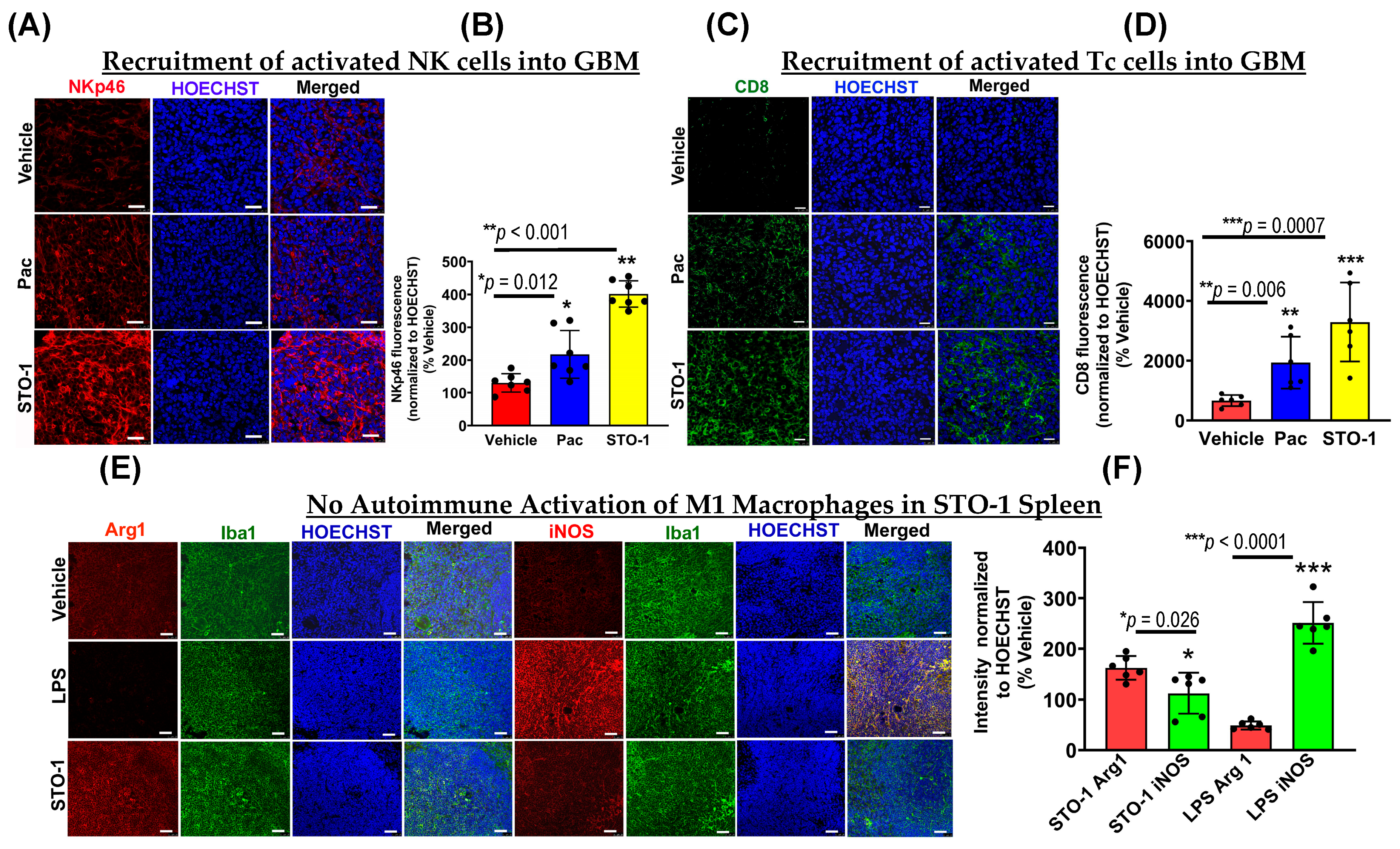 64]. Thus, STO-1 stands as a prototypic molecule that offers the proof of our concept of turning only the TME against the GBM tumor. Furthermore, because TAMs and NK cells do not require antigen presentation, our strategy will be effective in eliminating GBM cells and GBM stem cells regardless of their mutation load.
