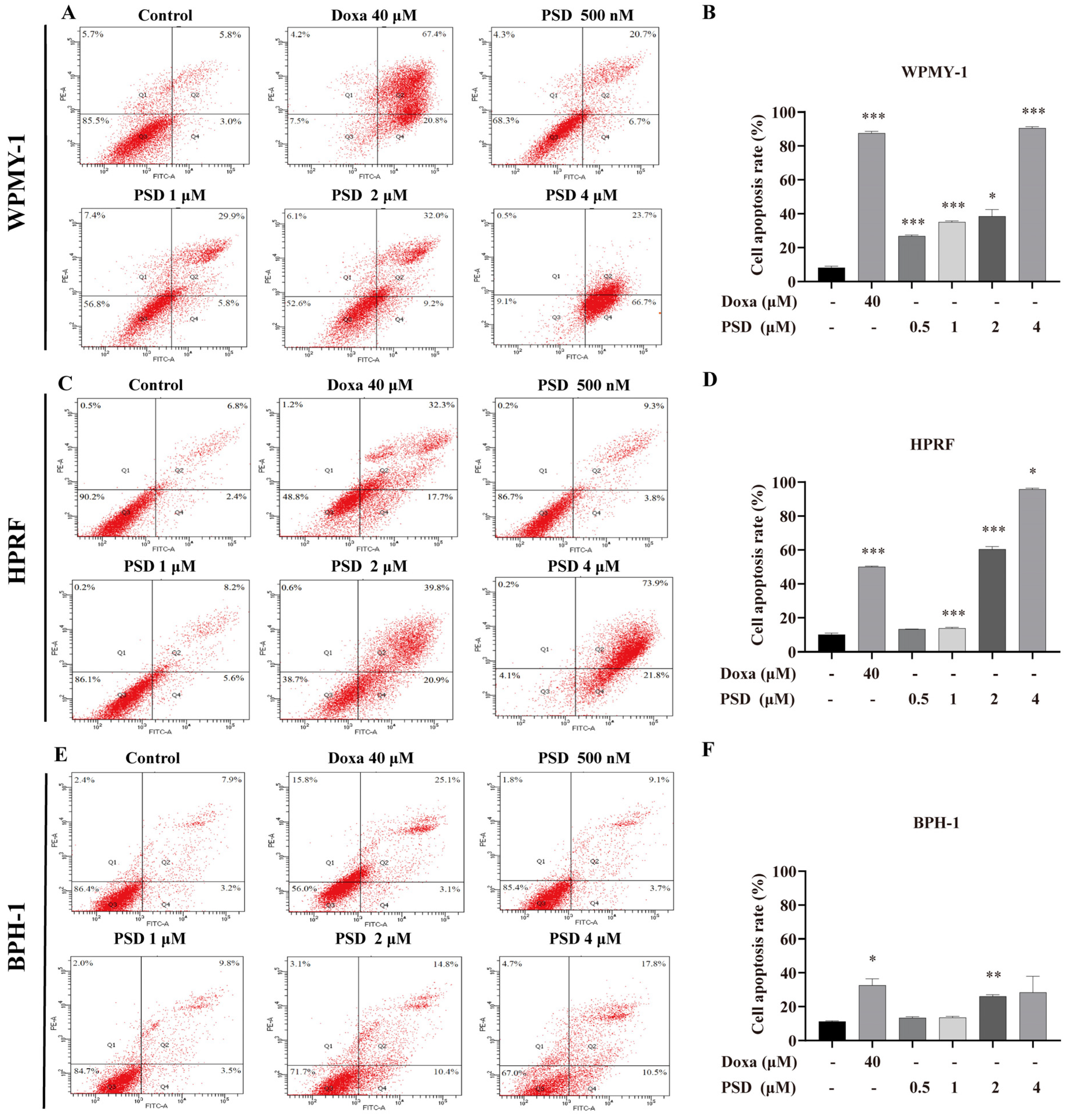 3.3. PSD Induces Apoptosis in WPMY-1, HPRF, and BPH-1 Cells