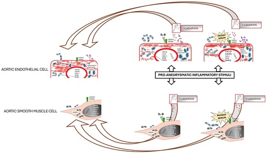 Spartano, L.; Lombardi, M.; Ardita, V.; Chiesa, R.; Aramini, A.; Allegretti, M.; Baccellieri, D.; De Filippis, L.; Foglieni, C. Ladarixin Potential over the Effects of IL-8 and of Serum from Patients with Abdominal Aortic Aneurysm on Human Aortic Cells. Cells 2025, 14, 1713. https://doi.org/10.3390/cells14211713