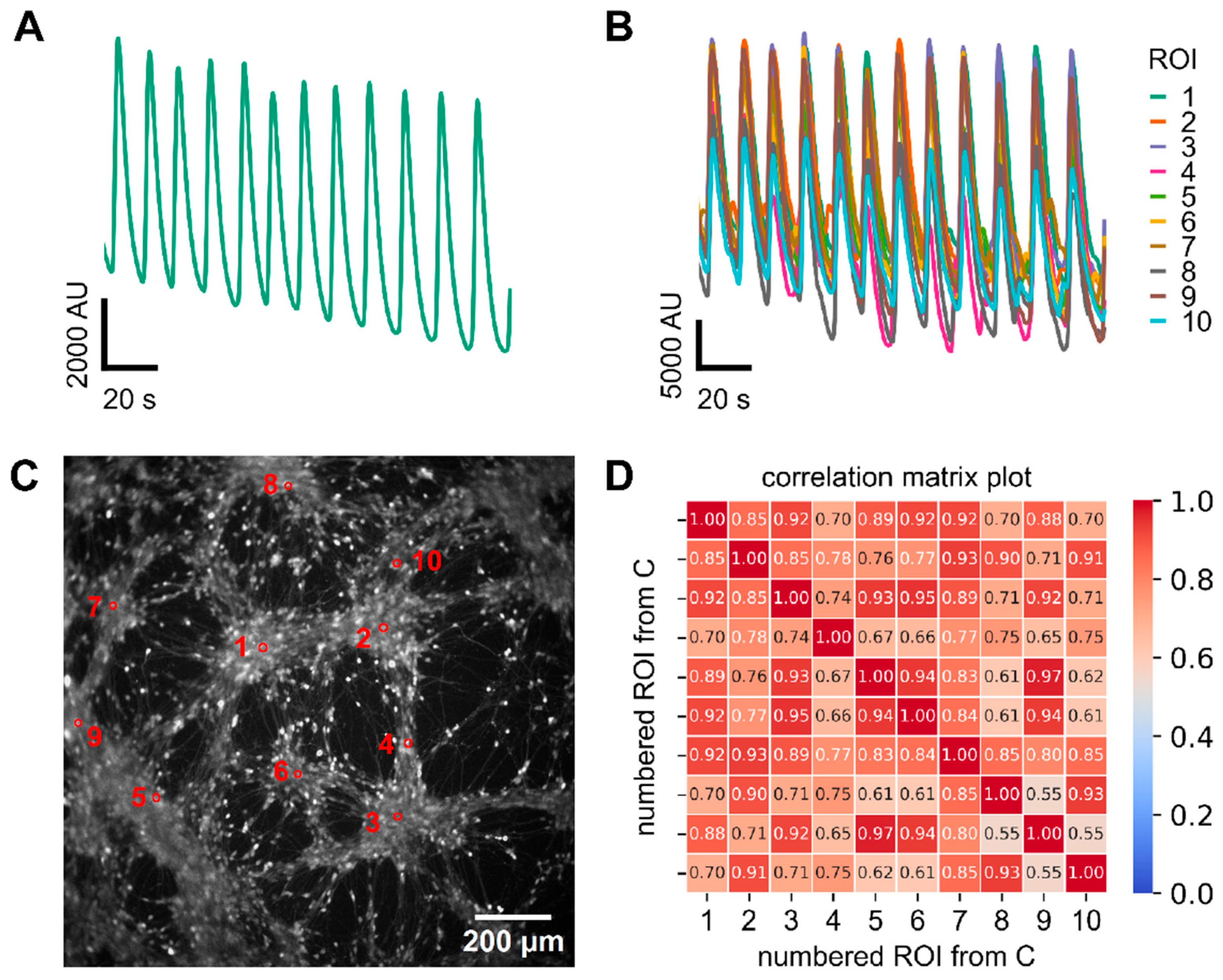 - Murphy, T.H.; Blatter, L.A.; Wier, W.G.; Baraban, J.M. Spontaneous synchronous synaptic calcium transients in cultured cortical neurons. J. Neurosci. 1992, 12, 4834–4845. [Google Scholar] [CrossRef] [PubMed]
