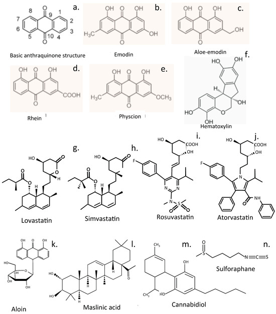 - Adnan, M.; Rasul, A.; Hussain, G.; Shah, M.A.; Sarfraz, I.; Nageen, B.; Riaz, A.; Khalid, R.; Asrar, M.; Selamoglu, Z.; et al. Physcion and Physcion 8-O-β-D-glucopyranoside: Natural Anthraquinones with Potential Anticancer Activities. Curr. Drug Targets 2021, 22, 488–504. [Google Scholar] [CrossRef]