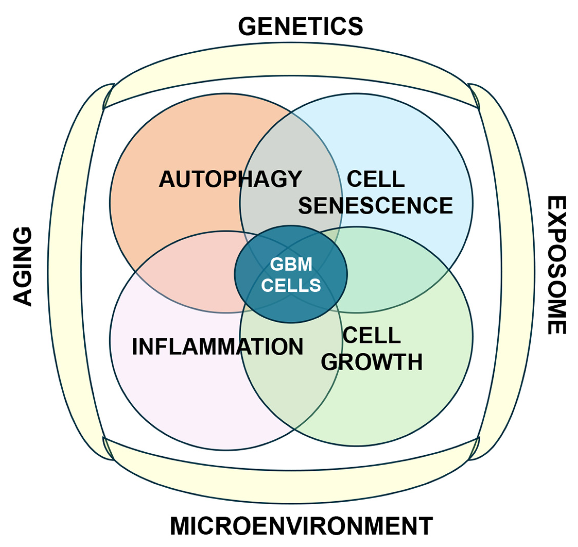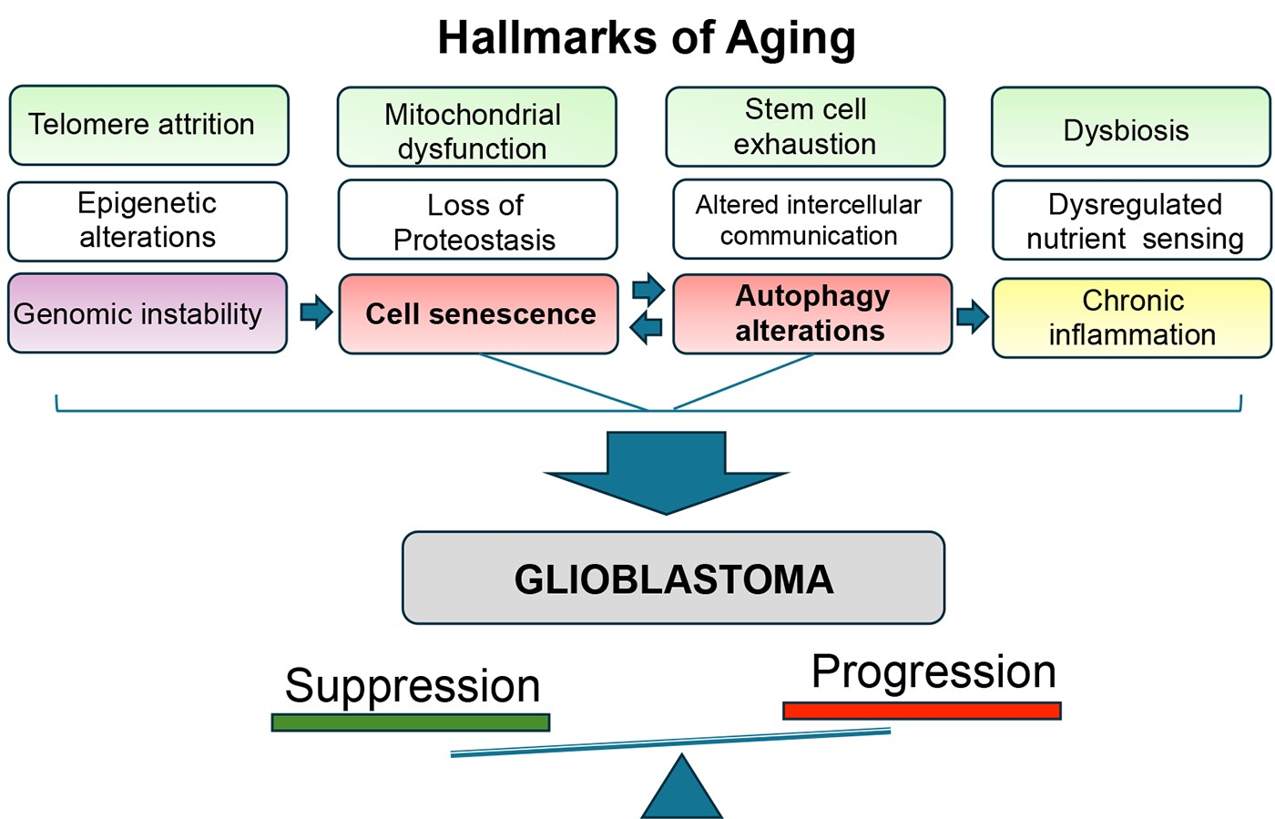- The role of some of the aging hallmarks in the progression and suppression of GBM has been considered; however, the contribution of interactions among them has received less attention.