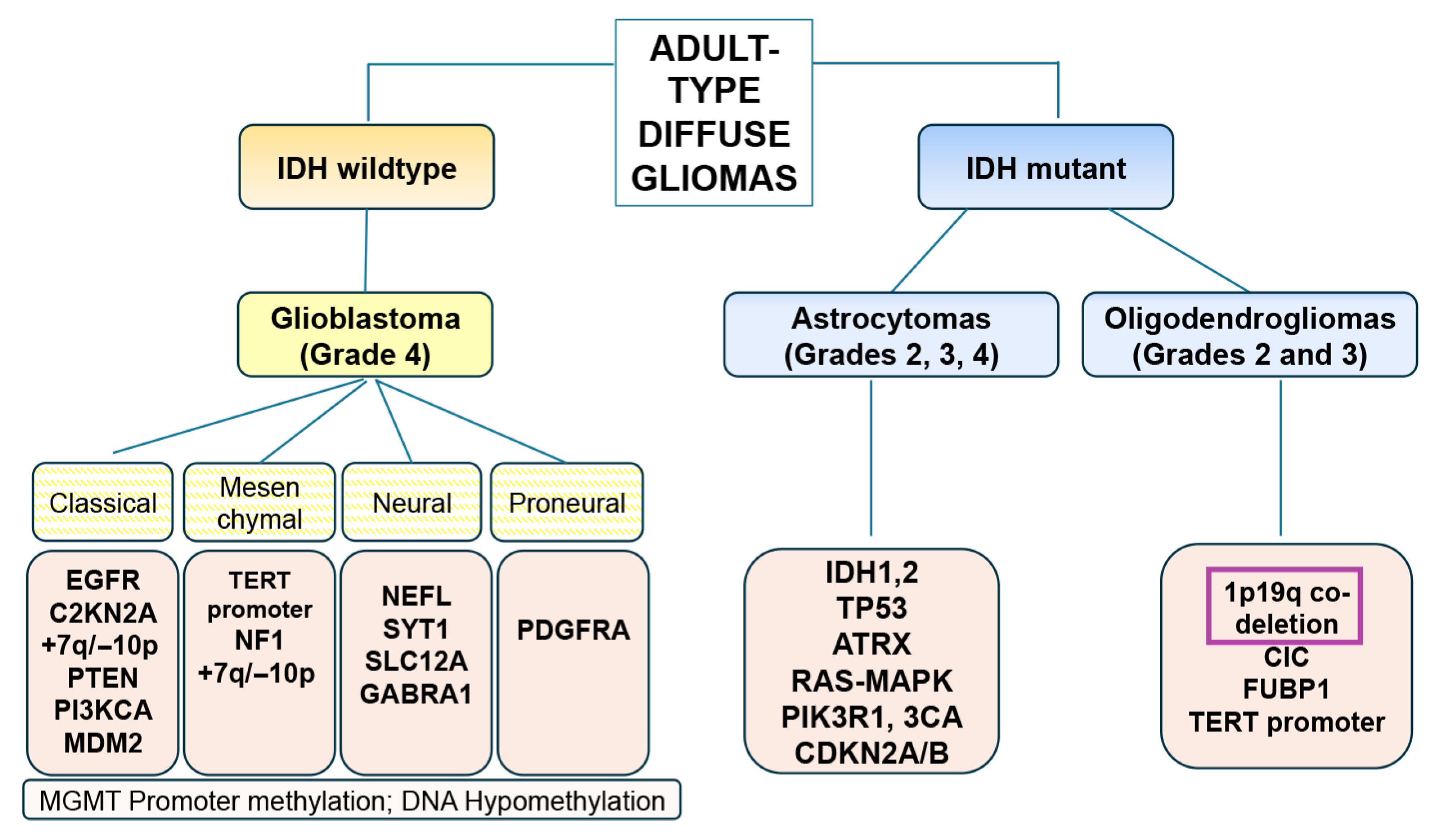 - Crespo, I.; Vital, A.L.; Gonzalez-Tablas, M.; Patino Mdel, C.; Otero, A.; Lopes, M.C.; de Oliveira, C.; Domingues, P.; Orfao, A.; Tabernero, M.D. Molecular and Genomic Alterations in Glioblastoma Multiforme. Am. J. Pathol. 2015, 185, 1820–1833. [Google Scholar] [CrossRef] [PubMed]