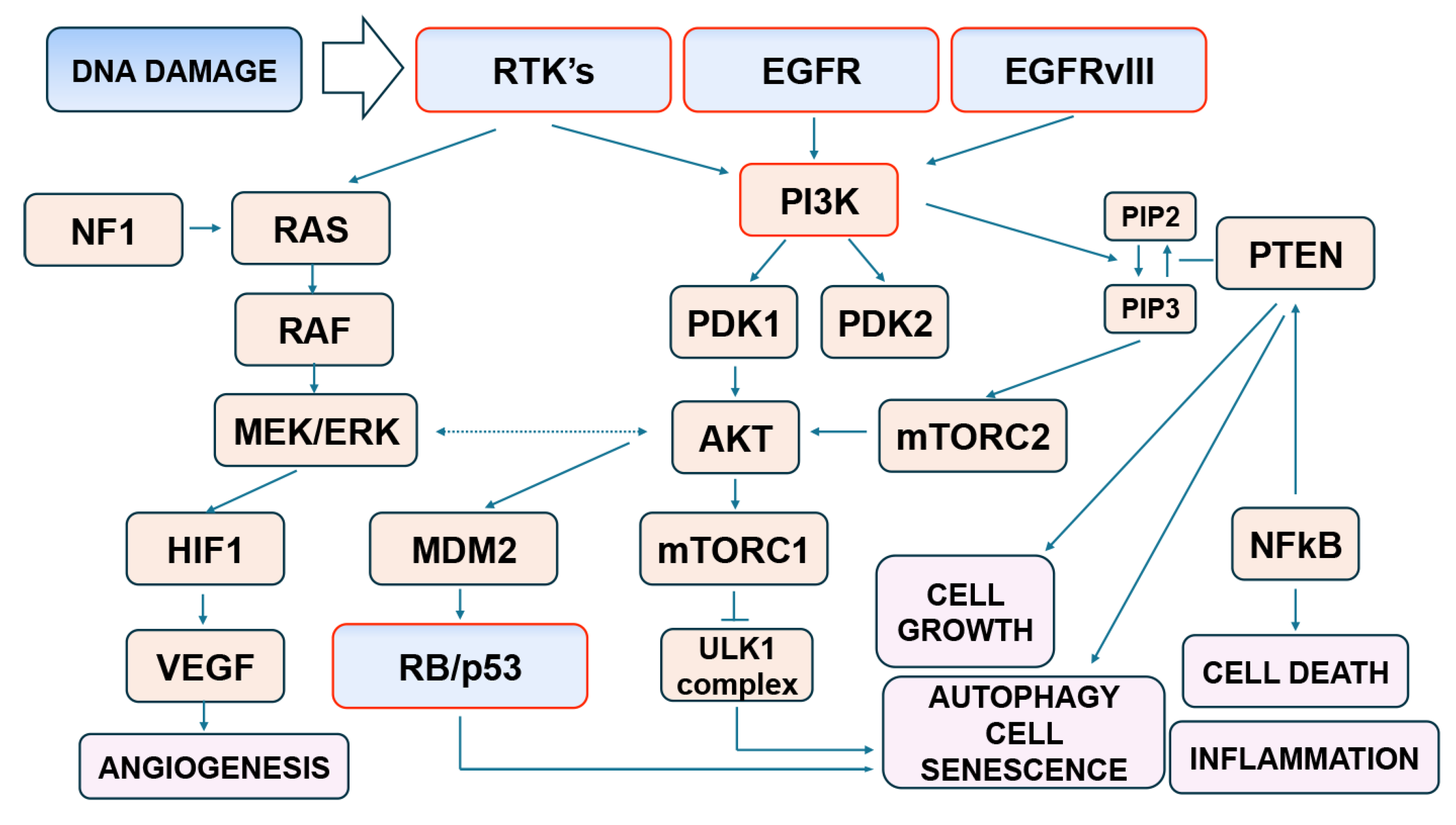 - Tilak, M.; Holborn, J.; New, L.A.; Lalonde, J.; Jones, N. Receptor Tyrosine Kinase Signaling and Targeting in Glioblastoma Multiforme. Int. J. Mol. Sci. 2021, 22, 1831. [Google Scholar] [CrossRef]